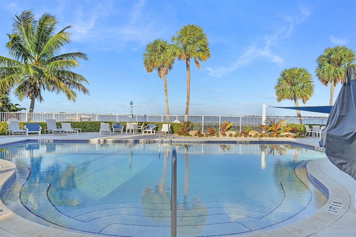 Waterfront 2/2 3 Bed retreat at the Jensen Beach Causeway Bridge! Walk to Indian River Lagoon Beach or 2 MIN drive to the Atlantic Ocean Beach. Enjoy peaceful water views as boats go by, FISH FROM THE DOCK, sun loungers, private patio dining & a bright sunroom with dining. Relax at the community pool, hit the tennis/pickleball courts, take a scenic bike ride or grill your catch. With dining, shopping & parks, The Sunset House is a perfect mix of waterfront relaxation & Treasure Coast adventure!