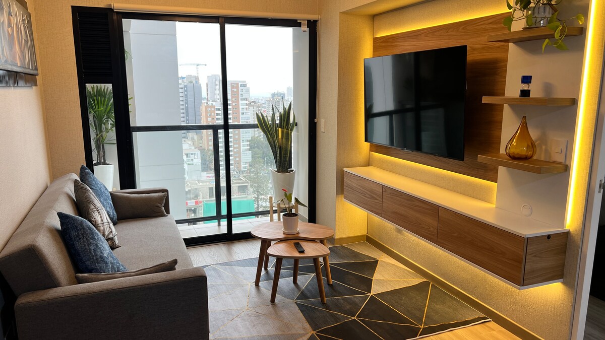 Όμορφο ολοκαίνουργιο διαμέρισμα στην καρδιά της Avenida San Felipe με: - Άνετο σαλόνι με άνετα έπιπλα και εκπληκτική θέα, ιδανικό για χαλάρωση. -Κουζινάκι πλήρως εξοπλισμένη με σύγχρονες συσκευές. -Ενσωματωμένο πλυντήριο με lavaseca για περισσότερη ευκολία. -Πλήρες μπάνιο με ζεστό νερό και όλες τις απαραίτητες παροχές. - Ζεστό και φωτεινό υπνοδωμάτιο, με ένα άνετο κρεβάτι. -Balcón με εκπληκτική θέα στην πόλη. Βρίσκεται σε μια στρατηγική περιοχή του Jesús María.