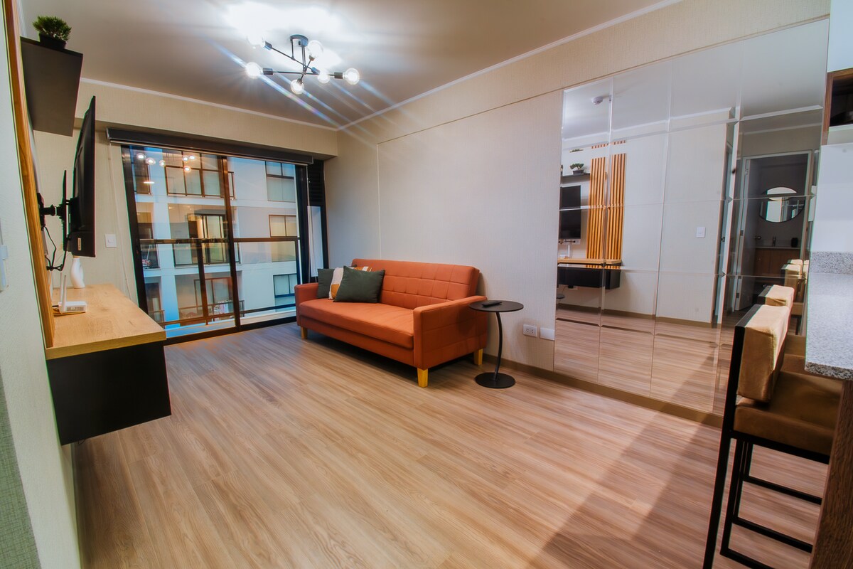 ✨ ΕΞΩΤΕΡΙΚΉ ΘΈΑ - ΜΠΑΛΚΌΝΙ✨ Απολαύστε μια άνετη και κομψή διαμονή σε αυτό το πανέμορφο ΟΛΟΚΑΙΝΟΥΡΓΙΟ διαμέρισμα 1 υπνοδωματίου. Μοντέρνο, λειτουργικό και άνετο, ιδανικό για ξεκούραση ή διασκέδαση με τα επιτραπέζια παιχνίδια μας🧩🎲. Βρίσκεται σε μια προνομιακή περιοχή της Χεσούς Μαρία, λίγα βήματα από το Σαν Ισίντρο. Κοντά στο Real Plaza Salaverry, το University of the Pacific, το UPC, το Vivanda, το Wong, τις πρεσβείες, την κλινική San Felipe, το νοσοκομείο Rebagliati και πολλά άλλα. 27 λεπτά από το αεροδρόμιο 15 λεπτά από το Εθνικό Στάδιο 15 λεπτά από το Malecón