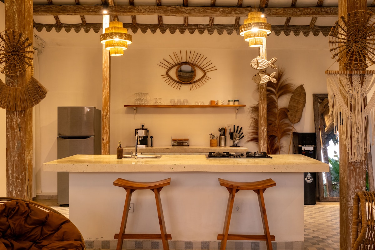 ΑΝΟΙΧΤΟ ΚΑΙ ΓΙΑ ΜΑΚΡΟΠΡΟΘΕΣΜΟ ΕΝΟΙΚΙΟ Καλώς ήρθατε σε ένα κατάλυμα που έχει σχεδιαστεί όχι μόνο για να φαίνεται όμορφο, αλλά και για να σας κάνει να νιώσετε σαν στο σπίτι σας! Μινιμαλιστικό, μοντέρνο, ζεστό. Σκυρόδεμα, ξύλο, γυαλί, απαλά υφάσματα και τροπικό πράσινο. Όχι υπερβολικά διακοσμημένο. Απλά ένας χώρος που αναπνέει και σας αφήνει να αναπνεύσετε κι εσείς. 📍 ΤΟΠΟΘΕΣΙΑ: ακριβώς εκεί που θέλετε να είστε Ήσυχο, ασφαλές, ιδιωτικό, αλλά μόνο λίγα λεπτά από: - 1 λεπτό με τα πόδια από το καφέ Copenhagen. - διάσημα σημεία του Canggu λίγα λεπτά με τα πόδια από τη βίλα - παραλίες και σερφ - 5 λεπτά με ποδήλατο