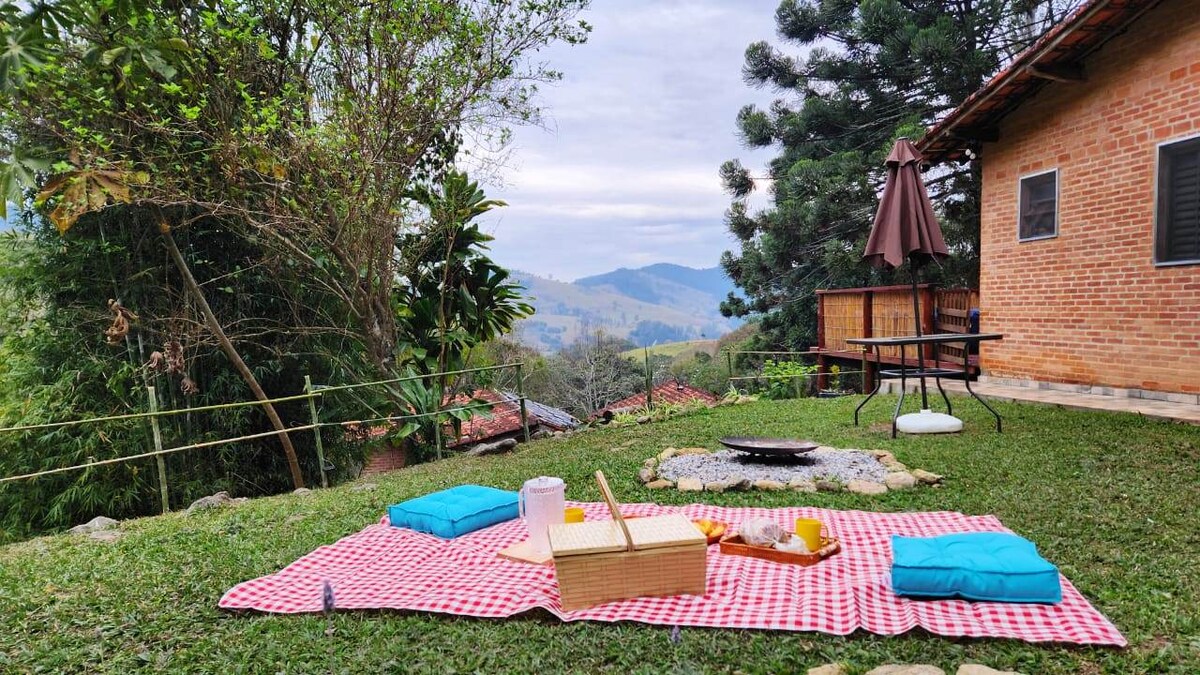 Quer um lugar perfeito pra descansar ,relaxar em uma hidromassagem e só ouvir o canto dos pássaros?Lugar muito tranquilo com linda vista para o vale e para as montanhas. Casa completa com todos utensílios de cozinha e uma ampla área gourmet e wi-fi. Privacidade e paz!! Ponto turístico a 3 km (Cachoeira escondida)obs(não é permitido som alto)