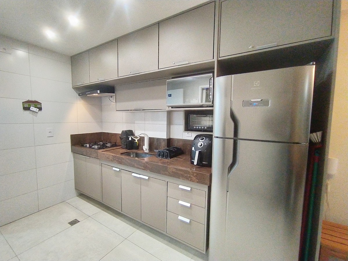Απολαύστε άνεση και κομψότητα, ιδανικό για να φιλοξενήσει έως 4 άτομα, συμπεριλαμβανομένων των παιδιών. Βρίσκεται μπροστά στη θάλασσα της παραλίας Cabo Branco, κοντά σε τουριστικά αξιοθέατα (Φάρος και Συνεδριακό Κέντρο Cabo Branco, φυσικές πισίνες) και γαστρονομικά αξιοθέατα. ✅ 24ωρη ρεσεψιόν. Διακοσμημένο, ενσωματωμένο σαλόνι με κουζίνα, 2 υπνοδωμάτια (ένα διπλό και ένα μονό με πτυσσόμενο κρεβάτι) και 1 μπάνιο. 🚫Απαγορεύεται το κάπνισμα. 🚫Δεν δεχόμαστε ζώα. 🚫Δεν παρέχουμε υπηρεσία καθαριότητας ή πρωινό.