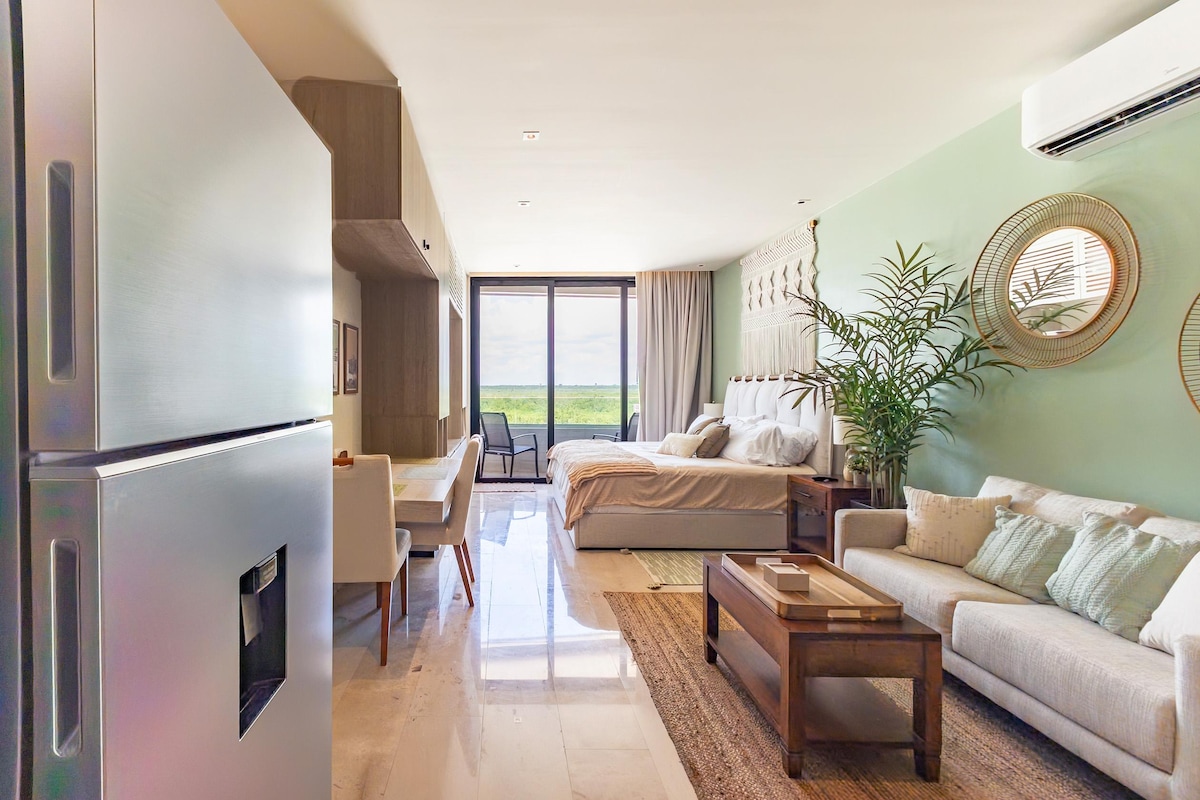 Welcome to Greta Puerto Morelos, where luxury meets Caribbean charm. This stylish 1-bedroom apartment offers a private pool, private patio, and direct beach access, perfect for travelers seeking comfort, design, and relaxation by the sea. Just 8 minutes from downtown Puerto Morelos, this modern retreat is ideal for couples, digital nomads, or solo travelers looking for an unforgettable escape.