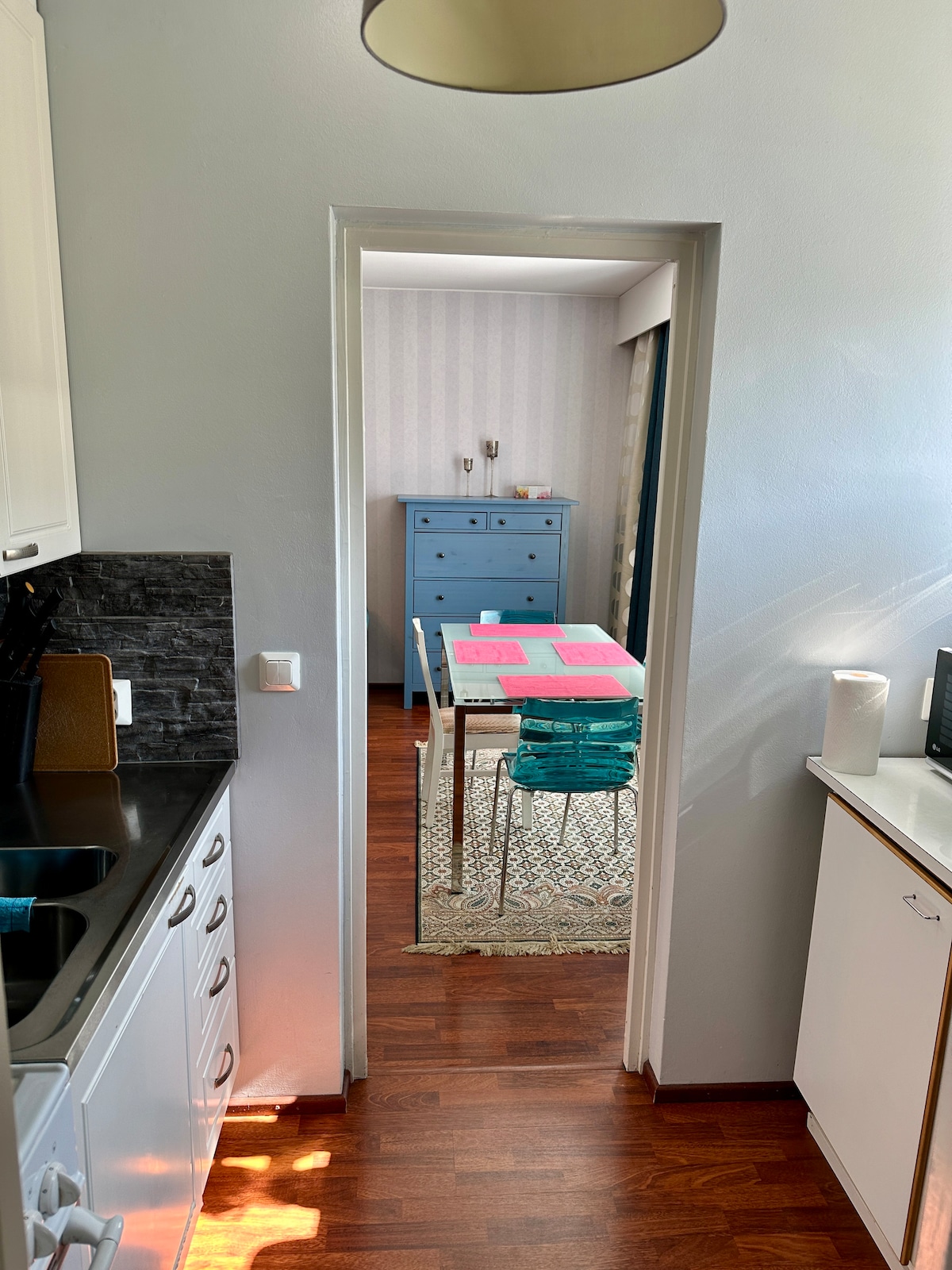 Ένα εκπληκτικό και άνετο διαμέρισμα βρίσκεται σε κεντρική τοποθεσία, αλλά ήσυχο στο κέντρο του Joensuu. Το διαμέρισμα αποπνέει καρελιανό χαρακτήρα και την ηρεμία της άγριας φύσης. Μπορείτε να κοιμηθείτε κάτω από ένα πραγματικό κούτσουρο και να δειπνήσετε το μαγικό άρωμα σχεδόν μιας αισθητηριακής μαρμελάδας. Το διαμέρισμα διαθέτει όλες τις σύγχρονες παροχές. Κεραμική κουζίνα, πλυντήριο πιάτων, έξυπνη τηλεόραση, πλυντήριο ρούχων, σύνδεση χωρίς κλειδί κ.λπ. - Σιδηροδρομικός σταθμός 1,6 χλμ. - S-market Suvantokatu 550 μ. - K-Citymarket Downtown 1 χλμ. - University of Eastern Finland 500 m