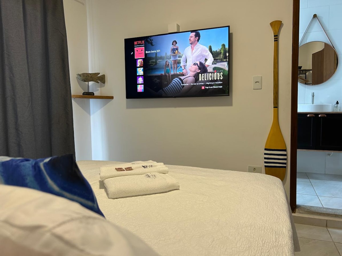 Νέο πλήρως επιπλωμένο διαμέρισμα, σε μια εξαιρετικά άνετη και ήσυχη πολυκατοικία με δασωμένη εξωτερική περιοχή. Wi-Fi υψηλής ποιότητας με οπτικές ίνες 250mbps, κλιματισμός στα υπνοδωμάτια και το σαλόνι, πλυντήριο και στεγνωτήριο, μπαλκόνι με ψησταριά, ιδανικό για στιγμές χαλάρωσης. Σε εξαιρετική τοποθεσία, στη γειτονιά Anita Garibaldi, κοντά στον σταθμό λεωφορείων, σούπερ μάρκετ, εστιατόρια, με γρήγορη και εύκολη πρόσβαση στο BR 101. **Η τιμή που αναφέρεται ισχύει για έως 2 επισκέπτες, ελέγξτε τους κανόνες για την κράτηση.**