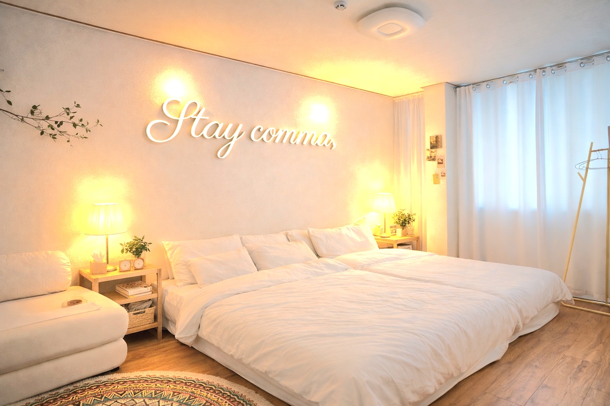 Καλώς ήρθατε. Είναι ένα σπίτι. Το δωμάτιο είναι ένα κατάλυμα με πολλά αξιοθέατα όπου μπορείτε να δείτε τη νυχτερινή θέα της πόλης, το λιμάνι, τη γέφυρα Busan Port και τον πύργο Yongdusan από το παράθυρο του σαλονιού. Αυτό το δωμάτιο είναι κατάλληλο για όσους θέλουν ένα ευρύχωρο (28 pyeong) και ένα καθαρό περιβάλλον. Ακολουθούμε διεξοδικά τους κανόνες καραντίνας. Το κατάλυμα απέχει 15 λεπτά με τα πόδια από τον σταθμό Busan και 2 λεπτά με τα πόδια από τη γραμμή 1 του μετρό Busan. -Εξοπλισμένο με ατομική θέρμανση και ατομικό κλιματισμό σε κάθε δωμάτιο. -Εύκολη άφιξη και αναχώρηση με άφιξη χωρίς επαφή - Ώρα άφιξης > 16:00 Ώρα αναχώρησης > 11:00 - Μπορείτε να παρακολουθήσετε διάφορα ott με τη Smart TV, όπως το κανάλι KT και το Netflix/YouTube κ.λπ. - Δωρεάν WiFi -Σαμπουάν/μαλακτικό/αφρόλουτρο/απολυμαντικό χεριών/αφρός καθαρισμού/πετσέτες - Γυαλί κρασιού/ποτήρια σότζου/ποτήρια μπύρας/πιάτα/μπολ/κατσαρόλες/τηγάνια/κουζίνα ρυζιού/μαγειρικά σκεύη. - Φιλτραρισμένος καθαριστής νερού/πλυντήριο ρούχων/στεγνωτήριο ρούχων/σίδερο/σιδερώστρα/πιστολάκι μαλλιών/σίδερο για μπούκλες/ηλεκτρική σκούπα ρομπότ/μασάζ - Η στάθμευση είναι δωρεάν για έως και ένα αυτοκίνητο και είναι χώρος στάθμευσης πύργου. (Υπάρχει ένας τύπος αυτοκινήτου που δεν μπορεί να σταθμεύσει. Ελέγξτε όταν κάνετε κράτηση)
