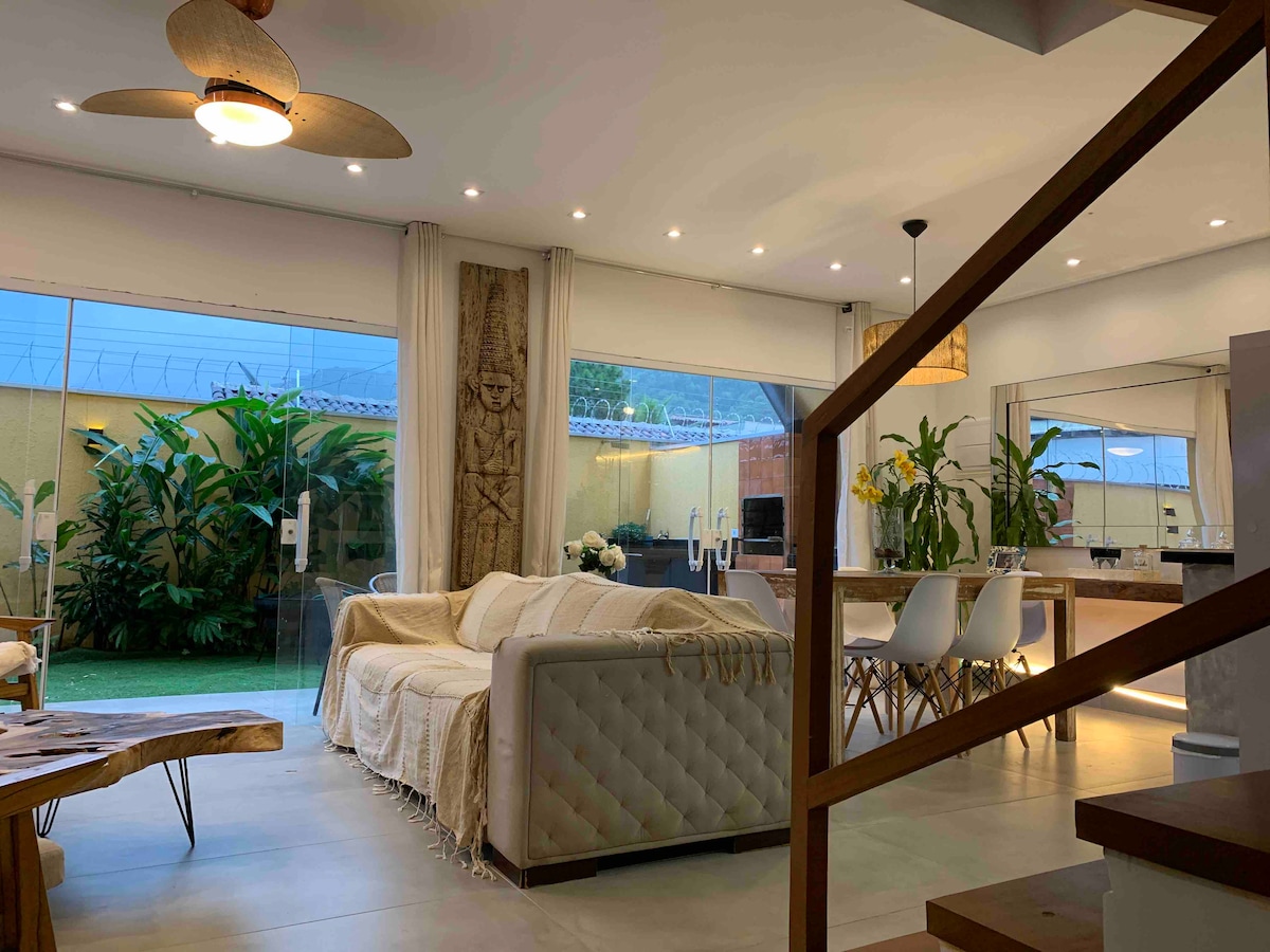 Σπίτι σε κλειστή πολυκατοικία, γοητευτική διακόσμηση σε μοντέρνο ρουστίκ στιλ, μόλις 7 λεπτά από την παραλία με τα πόδια και 2 λεπτά από τα κύρια εστιατόρια και το SM. Περιτριγυρισμένο από το πράσινο του Ατλαντικού Δάσους, πρόσφατα ανακαινισμένο, 3 θέσεις στάθμευσης, 3 σουίτες για ζευγάρια που φιλοξενούν άνετα έως 6 άτομα και 3 παιδιά. Η κουζίνα είναι για όσους απολαμβάνουν να διασκεδάζουν με την οικογένεια και τους φίλους τους ενώ μαγειρεύουν, καθώς είναι ενσωματωμένη στο ευρύχωρο σαλόνι, την ψησταριά και την ιδιωτική πισίνα. Για τις κρύες ημέρες έχουμε τζάκια και για τις βροχερές ημέρες αίθουσα τηλεόρασης.