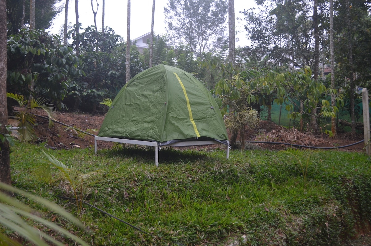 Το Green Garden Homestay βρίσκεται στον τόπο της γραφικής ομορφιάς, το Chundale, στην περιοχή του λόφου Wayanad. Παρέχουμε σκηνές για τους ταξιδιώτες περιπέτειας και πεζοπορίας, που φιλοξενούν 3 άτομα σε μία σκηνή. Ο χώρος τουαλέτας είναι κοντά. Παρέχουμε επίσης δωρεάν διάλειμμα γρήγορα. Έχουμε 2 σκηνές και το πολύ 6 άτομα μπορούν να κοιμηθούν σε αυτές τις δύο σκηνές. Η τιμή για επιπλέον άτομα μπορεί να καταβληθεί στην ιδιοκτησία. Παρέχουμε μία σκηνή για 3 άτομα ( έως 3). Δύο σκηνές θα παρέχονται για περισσότερα από 3 άτομα.