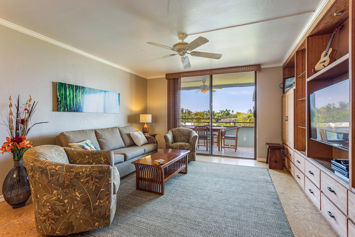 Καλώς ήρθατε στη Seaswept Mermaid Villa, ένα εκπληκτικό διαμέρισμα με θέα στον ωκεανό που βρίσκεται στην όμορφη περιοχή Keauhou του Kailua Kona. Αυτό το φιλόξενο καταφύγιο με δύο υπνοδωμάτια και δύο μπάνια είναι ιδανικό για οικογένειες ή γκρουπ έως έξι επισκεπτών, καθώς προσφέρει μια γαλήνια ατμόσφαιρα που αποτυπώνει την ουσία του παραδείσου της Χαβάης. Καθώς μπαίνετε μέσα, θα σας υποδεχτεί ένα ευρύχωρο σαλόνι που συνδυάζει άνεση και στιλ.