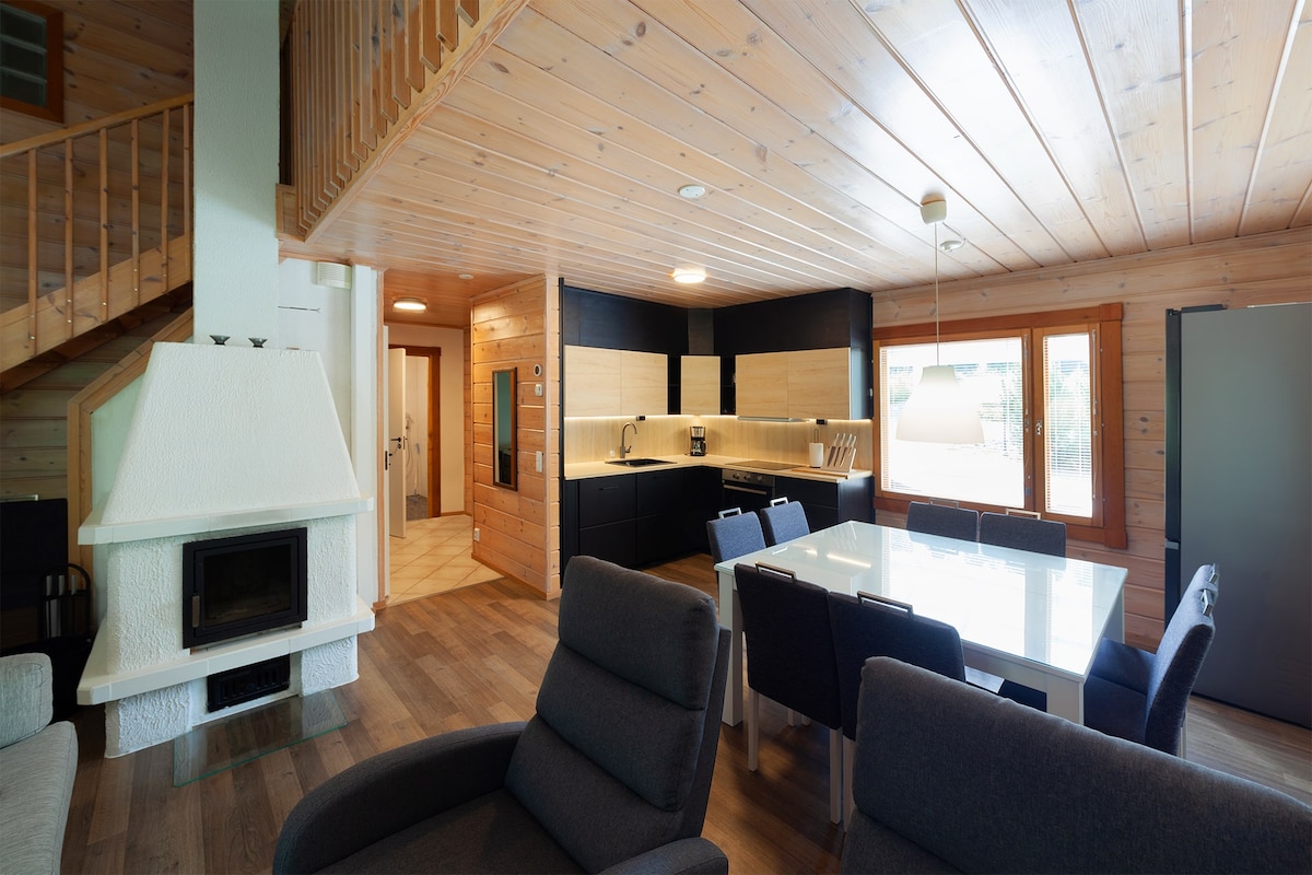 Το Σαββατοκύριακο Lux είναι ένα καλά εξοπλισμένο και ευρύχωρο διαμέρισμα για διακοπές στην καρδιά του χιονοδρομικού κέντρου Vuokatti. Η υπερυψωμένη οροφή στο σαλόνι, καθώς και το γαλλικό μπαλκόνι του επάνω ορόφου που ανοίγει στον χώρο, δίνουν χώρο σε αυτό το άνετο και κομψό διαμέρισμα διακοπών. Στον κάτω όροφο υπάρχει μια ευρύχωρη κουζίνα, μια τραπεζαρία και ένα υπνοδωμάτιο και ένα σαλόνι όπου το βράδυ κάθεται άνετα απολαμβάνοντας τη ζεστασιά ενός τζακιού από σαπουνόπετρα. Μπορείτε να κάνετε σκι και σκι ακριβώς στην μπροστινή πόρτα. Απαγορεύονται τα κατοικίδια.