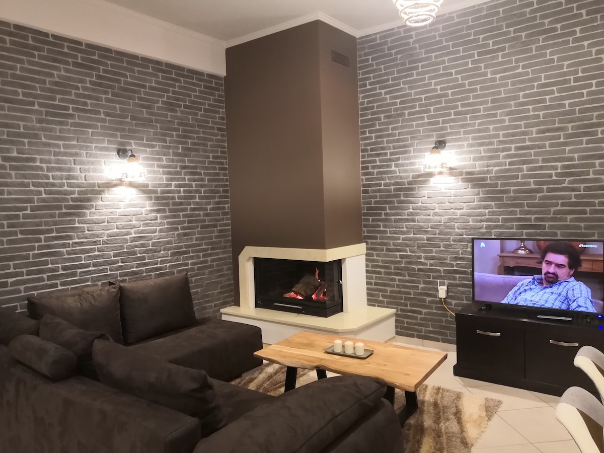 Μονοκατοικία,163τμ, για 10 ατ.Netflix,δωρεάν ιδιωτικό πάρκινγκ,ενεργό τζάκι και καλοριφέρ, αιρκοντίσιον σε όλα τα δωμάτια,πλήρως εξοπλισμένη για μια ευχάριστη διαμονή,κάθε εποχή, ιδανική για παρέες ή οικογένειες! A brand new and spacious house 10p,free private parking,with basement for storing motors and bicycles,active fireplace,radiators for heating,air conditioning in all rooms,163tm,situated in a quiet neighbourhood,with a great view of Meteora.Ideal for families and big groups of friends!