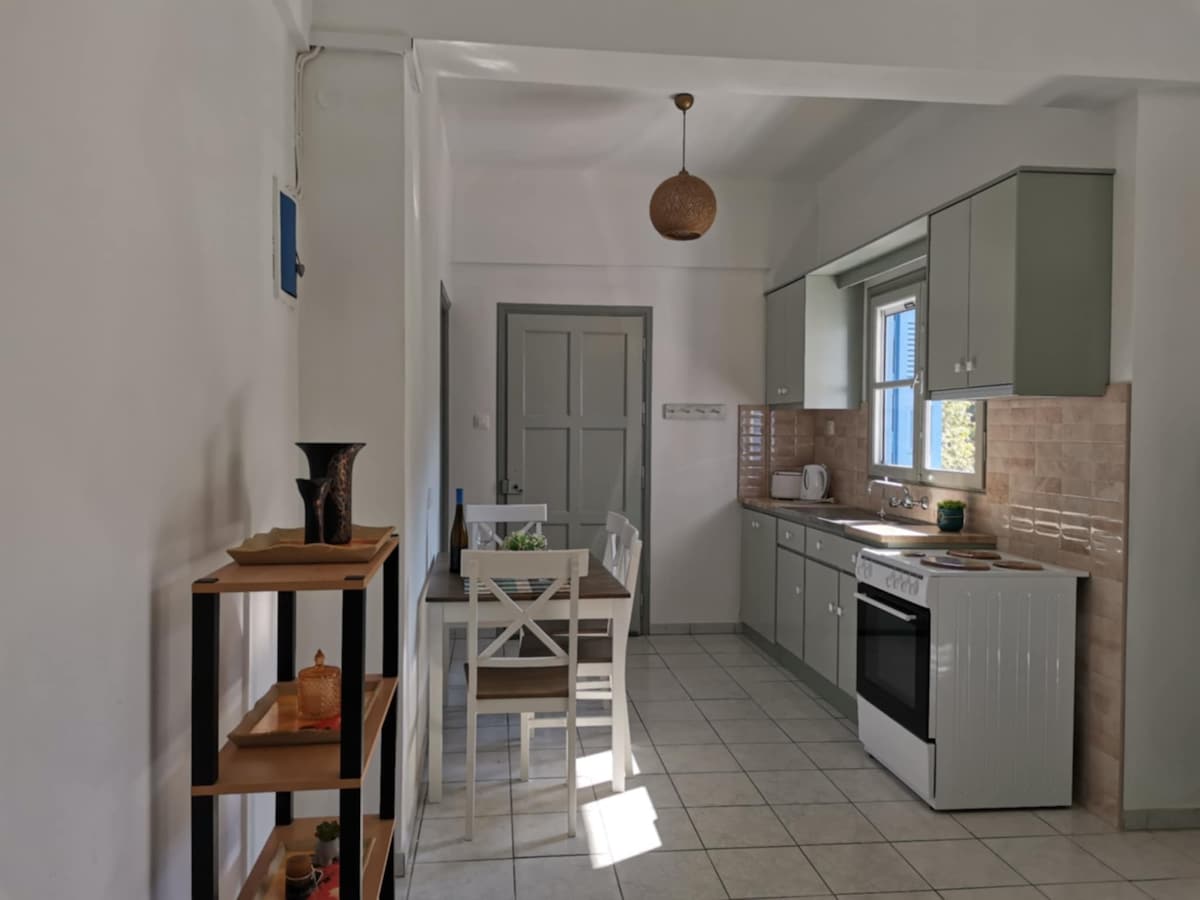 Καλωσορίσατε στο καταφύγιο σας στο νησί σας Ελάτε στο φιλόξενο καλοκαιρινό μας σπίτι στις Μύρτιες της Καλύμνου - ένα πραγματικό σπίτι με 100 τ.μ. παραδοσιακής ελληνικής ζεστασιάς και φωτός. Τα ψηλά ταβάνια, οι μεγάλες πόρτες και τα μεγάλα παράθυρα επιτρέπουν στον ήλιο να πλημμυρίσει κάθε δωμάτιο, ενώ σχεδόν κάθε σημείο στο εσωτερικό σας δίνει υπέροχη θέα στο Αιγαίο Πέλαγος.