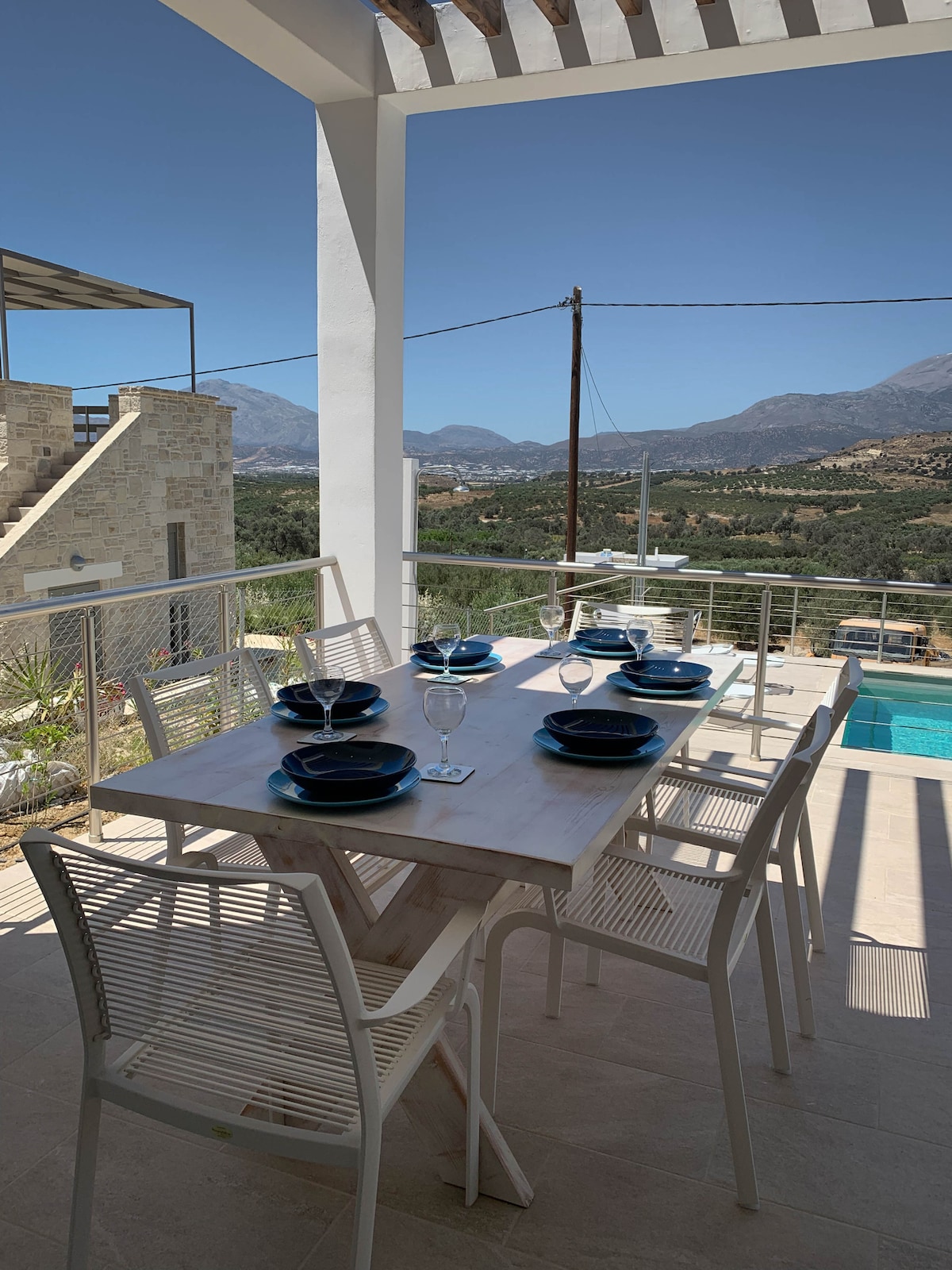 Η Villa Mojito χτίστηκε το 2020. Έχει εκπληκτική θέα στον Ψηλορείτη, την κοιλάδα της Μεσαράς και τη θάλασσα. Το σπίτι προσφέρει όλα όσα χρειάζεστε για να έχετε υπέροχες, ξεκούραστες διακοπές. Υπάρχουν αρκετές βεράντες και στεγασμένοι χώροι, καθώς και μια μεγάλη ηλιόλουστη βεράντα δίπλα στην πισίνα. Το 2022 προσθέσαμε μια μεγάλη ηλεκτρική πέργκολα για να παρέχουμε επιπλέον σκιά. Το σπίτι διαθέτει εξαιρετικό κλιματισμό για να σας κρατά δροσερό το καλοκαίρι και ζεστό το χειμώνα. Έχουμε επίσης μια σόμπα με πέλλετ.