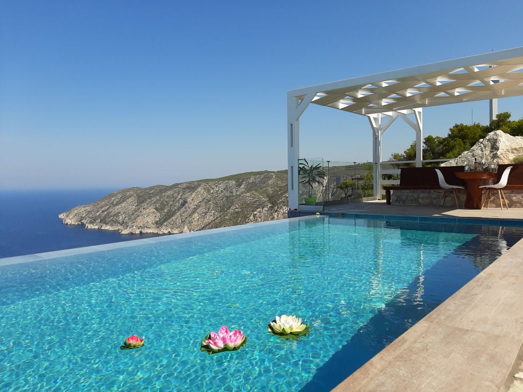Αυτό το εντυπωσιακό ακίνητο βρίσκεται στο Ακρωτήρι, στην κορυφή ενός λόφου, απολαμβάνοντας πανοραμική θέα τόσο προς το λιμάνι όσο και προς την πόλη της Ζακύνθου. Βρίσκεται σε βολική τοποθεσία μόλις 4 χλμ. από το λιμάνι και την κεντρική πλατεία της παλιάς πόλης. Τα έπιπλα BoConcept στο σαλόνι, το υπνοδωμάτιο με τα φυσικά συστήματα ύπνου και τα κλινοσκεπάσματα της COCO-MAT καθώς και η απαλή πινελιά από υψηλής ποιότητας λευκά είδη Guy Laroche ολοκληρώνουν την αίσθηση μιας πολυτελούς διαμονής.