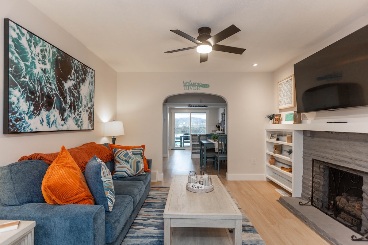 Μεγάλη ανοιχτή διαρρύθμιση, φιλική προς οικογένειες, φιλοξενεί έως 10 άτομα σε 4 υπνοδωμάτια, επιπλέον αναδιπλούμενο κρεβάτι, προσφέρει υπερσύγχρονο φωτισμό και παροχές με έξυπνη τηλεόραση σε όλα τα υπνοδωμάτια και σταθμούς φόρτισης. Πλήρως εξοπλισμένη κουζίνα, με ψυγείο κρασιών κάτω από τον πάγκο. Πλήρες πλυντήριο, τζάκι με αυτόματο θερμοστάτη. Στάθμευση 4 αυτοκινήτων μπροστά με υπόστεγο και πιθανώς 5 θέσεις πίσω. Σε μικρή πόλη κοντά σε πάρκα, βενζινάδικα, εστιατόρια, παντοπωλεία, ψώνια με αντίκες, φαρμακείο και διαπολιτειακός αυτοκινητόδρομος. Πεζοπορία και ποδηλασία
