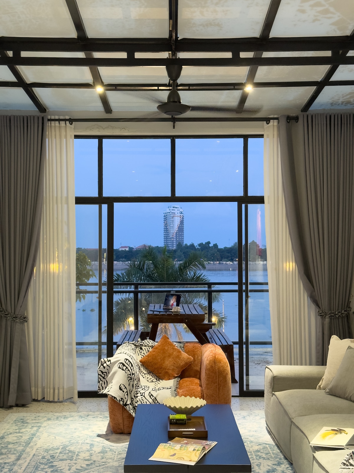 Ολοκαίνουργιο διαμέρισμα-σοφίτα, πλήρως επιπλωμένο και εξοπλισμένο με συσκευές εξοικονόμησης ενέργειας, εσωτερικό στιλ με μινιμαλιστική ιαπωνική αίσθηση ζεν. Όμορφο ψηλό παράθυρο με θέα απευθείας στον ποταμό Μεκόνγκ, δίνοντάς σας την αίσθηση ότι βρίσκεστε κάπου μακριά από την πόλη, ενώ απέχει μόλις 15 λεπτά με το αυτοκίνητο από το κέντρο της πόλης. Το συγκρότημα έχει αρκετά στρέμματα διαμορφωμένων κήπων και έναν παραποτάμιο πεζόδρομο. Οι εγκαταστάσεις περιλαμβάνουν 3 πισίνες, γυμναστήριο, σάουνα, καφετέρια, μίνι μάρκετ και εστιατόριο.