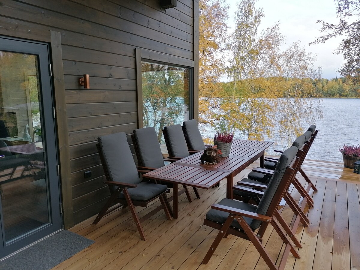 Das nagelneue, direkt am See liegende Ferienidyl bietet Ruhe, Komfort und wird Sie in eine "No-Stress" Sphäre abheben lassen - allerspätestens dann, wenn Sie der feuerbeheizten Finnischen Sauna einen Besuch abgestattet haben. Die grosse Fensterfrontwand des Haupthauses sowie dessen vollverglasten Terrassentüren sorgen für Licht und für einen herrlichen Blick auf den See. Es stehen ein Ruderboot und ein Kayak zur Verfügung. Der Hot-tub kann gegen ein Entgelt von 130 EUR gemietet werden.