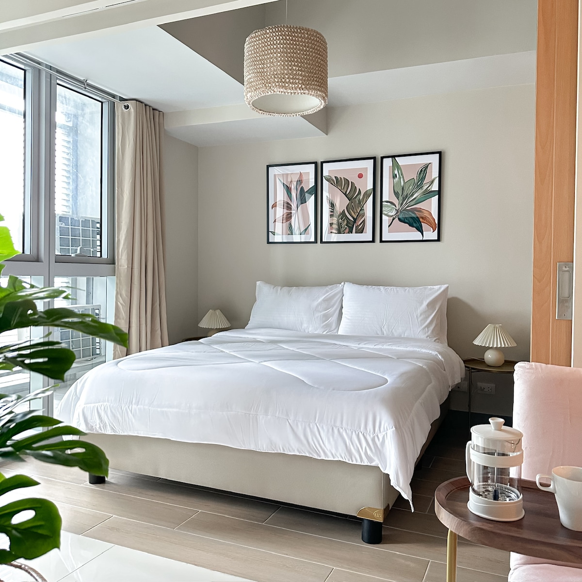 Αυτός ο κομψός και μοναδικός χώρος είναι εμπνευσμένος από το εσωτερικό του Crazy Rich Asian. Αυτός ο ολοκαίνουργιος χώρος βρίσκεται στην καρδιά της Bonifacio Global City και προσφέρει μια τέλεια εμπειρία στην κορυφαία περιοχή της χώρας για τον τρόπο ζωής και τις επιχειρήσεις. - Έξυπνη κλειδαριά για check-in χωρίς παρουσία οικοδεσπότη - Έξυπνη τηλεόραση 50 ιντσών 4k με Max/HBO. - Έξυπνος κλιματισμός και φώτα. - Πολύ γρήγορο wifi 250 Mbps. - Ήσυχος χώρος εργασίας Πρόσβαση επισκεπτών Πισίνα (μόνο Τρί έως Παρ) Δεν υπάρχει γυμναστήριο, αλλά υπάρχει γυμναστήριο στο εμπορικό κέντρο Πάρκινγκ Γήπεδα μπάσκετ και μπάντμιντον (πρέπει να γίνει κράτηση μία εβδομάδα πριν)
