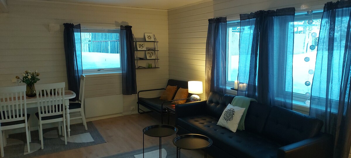 Βρείτε ηρεμία και ησυχία σε αυτό το ειδυλλιακό σπίτι. Ιδανικό για όσους αναζητούν ένα διάλειμμα από την καθημερινή ζωή. Το σπίτι βρίσκεται σε ένα όμορφο, ήσυχο περιβάλλον, με τον ήχο του ποταμού κοντά. Απολαύστε τον πρωινό καφέ σας στη βεράντα ή κάντε βόλτες στη φύση. Τον χειμώνα μπορείτε συχνά να δείτε μαγικά βόρεια φώτα να χορεύουν στον ουρανό. Ο χώρος προσφέρει μια ήσυχη βάση μόνο περίπου 10 χιλιόμετρα από το κέντρο της πόλης. Το σπίτι είναι πλήρως εξοπλισμένο για μια άνετη διαμονή, με καλά κρεβάτια και δωρεάν πάρκινγκ. Καλώς ήρθατε στο καταφύγιό σας!
