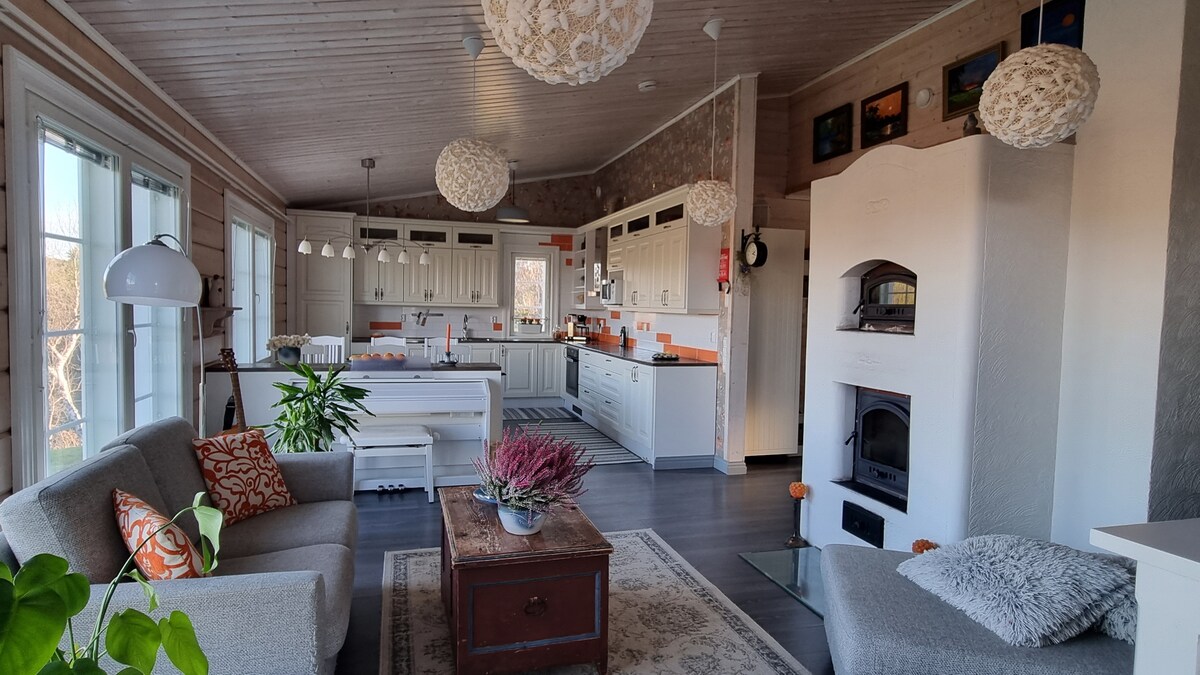 Καλώς ήρθατε στο ξυλόσπιτό μας, που βρίσκεται σε μια ήσυχη περιοχή δίπλα σε μια λίμνη. Το ξυλόσπιτο έχει θέα στη λίμνη και μπορείτε να δείτε το βόρειο σέλας και τον ήλιο του μεσονυκτίου από το παράθυρο του σαλονιού. Η περιοχή έχει ποικίλες ευκαιρίες για πεζοπορία, υπαίθριες δραστηριότητες και εμπειρίες όλο το χρόνο. Μη διστάσετε να μας ζητήσετε συμβουλές :) ΛΆΒΕΤΕ ΥΠΌΨΗ ΌΤΙ η κουκέτα είναι μερικώς ανοιχτή και δεν είναι κατάλληλη για μικρά παιδιά. Τα μικρά παιδιά μπορούν να χρησιμοποιήσουν το υπνοδωμάτιο, τον καναπέ-κρεβάτι στο σαλόνι ή ένα αφαιρούμενο στρώμα δαπέδου. Το ξυλόσπιτο διαθέτει δεξαμενή ζεστού νερού 120 λίτρων, υπάρχει ζεστό νερό για 3 - 4 άτομα.
