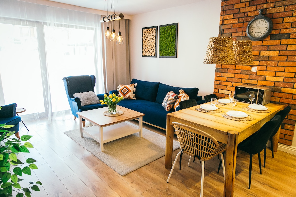 Piękny apartament z niezaburzonym widokiem na góry. Mieszkanie składa się z sypialni, salonu z kuchnią i łazienką. Wyposażony w wygodne łóżka i komfortowe szafy. Kuchnia w pełni wyposażona, w łazience pralkosuszarka . Apartament położony jest w Green Park Resort, na miejscu znajdują się baseny, sauny, siłownia, plac zabaw dla dzieci, restauracja.Miejsce parkingowe w cenie. Basen czynny 9-21 . Revisit Apartments godne polecenia
