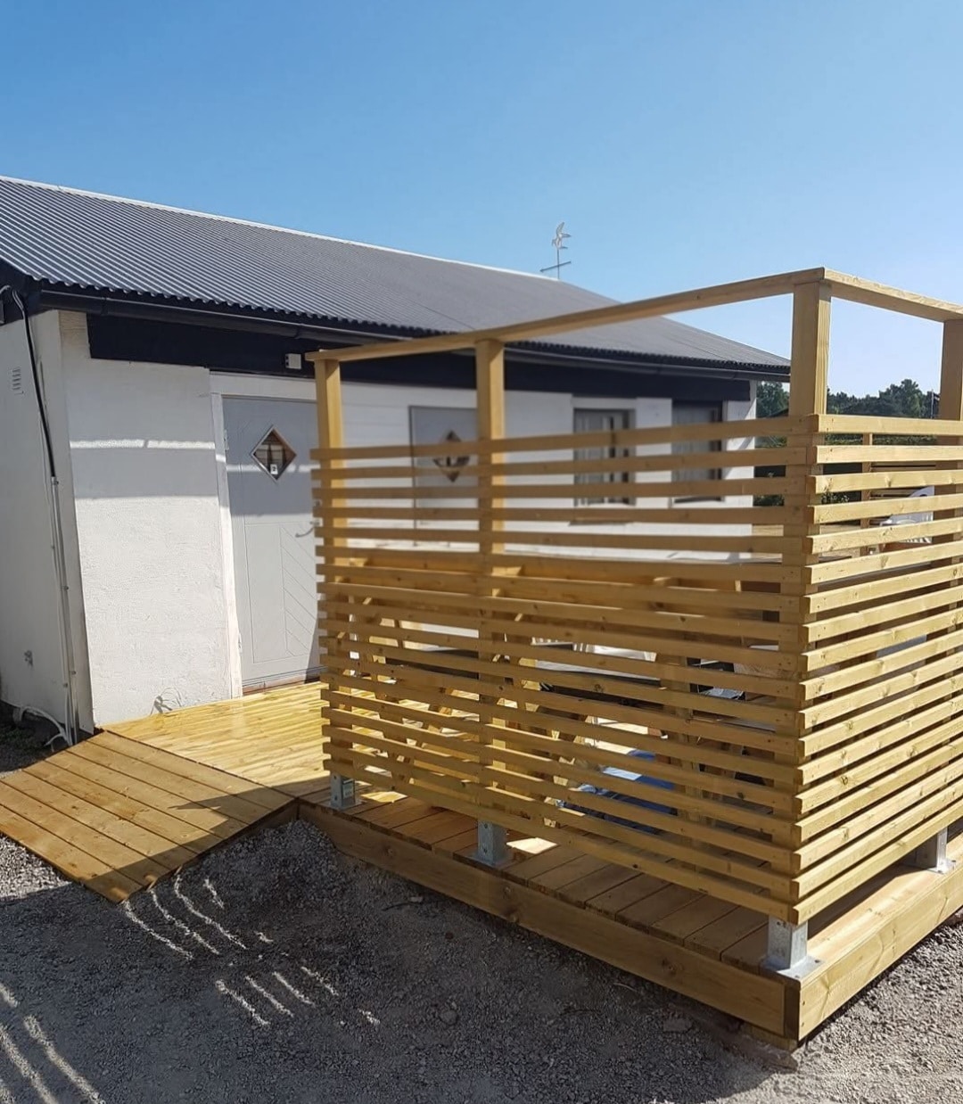 Νοικιάζουμε μια καλύβα στην ιδιοκτησία μας. Βρίσκεται πλούσια και ωραία περίπου 200 μέτρα από τη θάλασσα. Υπάρχουν καλές ευκαιρίες τόσο για ψάρεμα όσο και για κολύμπι. Το εξοχικό σπίτι έχει ένα υπνοδωμάτιο σοφίτα και πλακάκια μπάνιο. Έχει επίσης μια υπέροχη βεράντα με θέα ένα λιβάδι με άλογα.