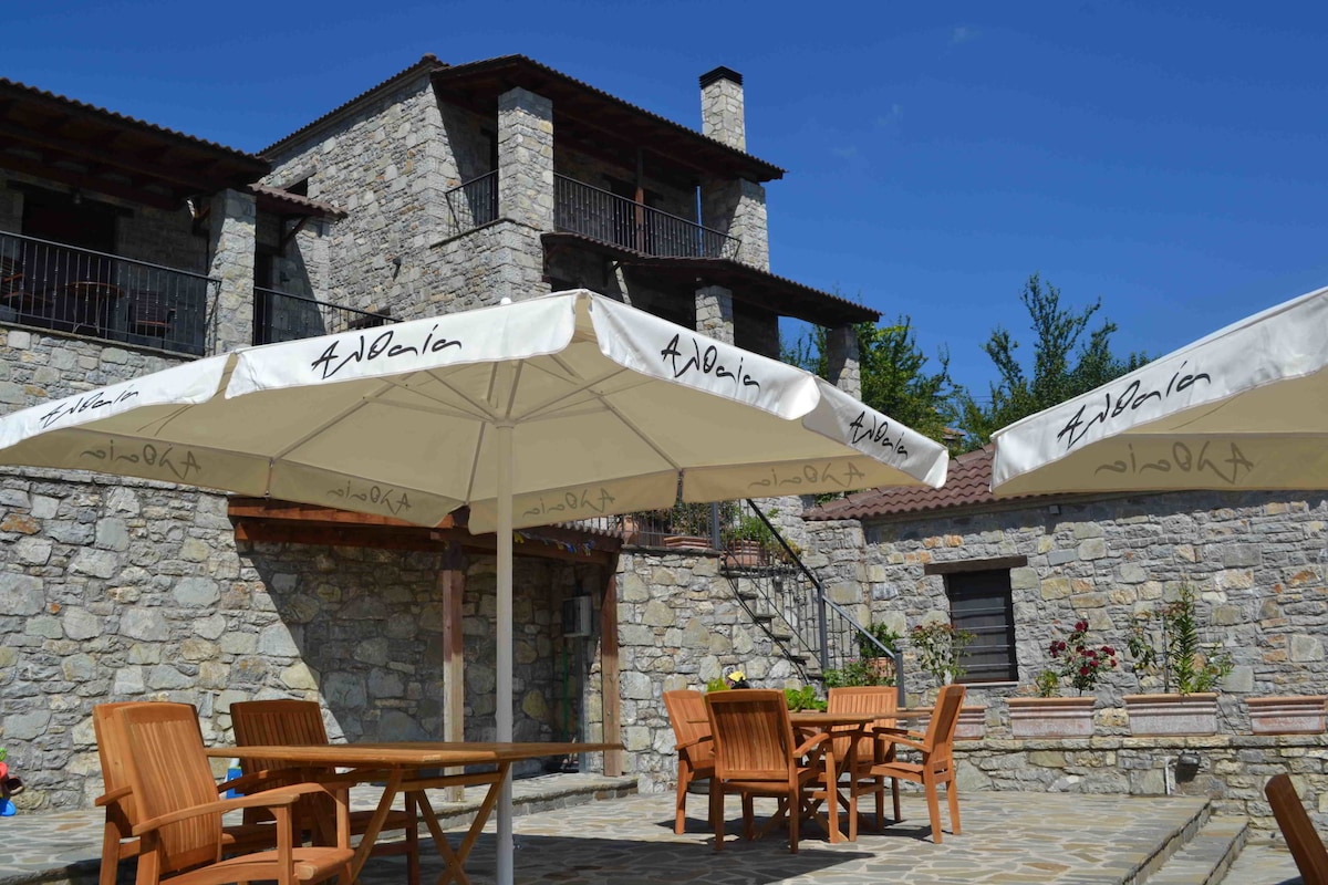 Η οικογένεια Χαντζόπουλου δημιούργησε με ιδιαίτερη φροντίδα και πολύ μεράκι έναν ζεστό και φιλόξενο χώρο.Το ξύλο και η πέτρα κυριαρχούν στο χώρο. Η εσωτερική διακόσμηση με τα χειροποίητα έπιπλα και τα παλιά αντικείμενα θα σας ταξιδέψουν στο χρόνο.Τα δωμάτια, ζεστά και ατμοσφαιρικά, προσφέρουν στιγμές γαλήνης, θαλπωρής και ρομαντισμού.Ποιότητα στη φιλοξενία, οικογενειακό περιβάλλον, 24ωρη εξυπηρέτηση, αναλυτικά προγράμματα εκδρομών, επαφή με την φύση και δραστηριότητες εναλλακτικού τουρισμού.