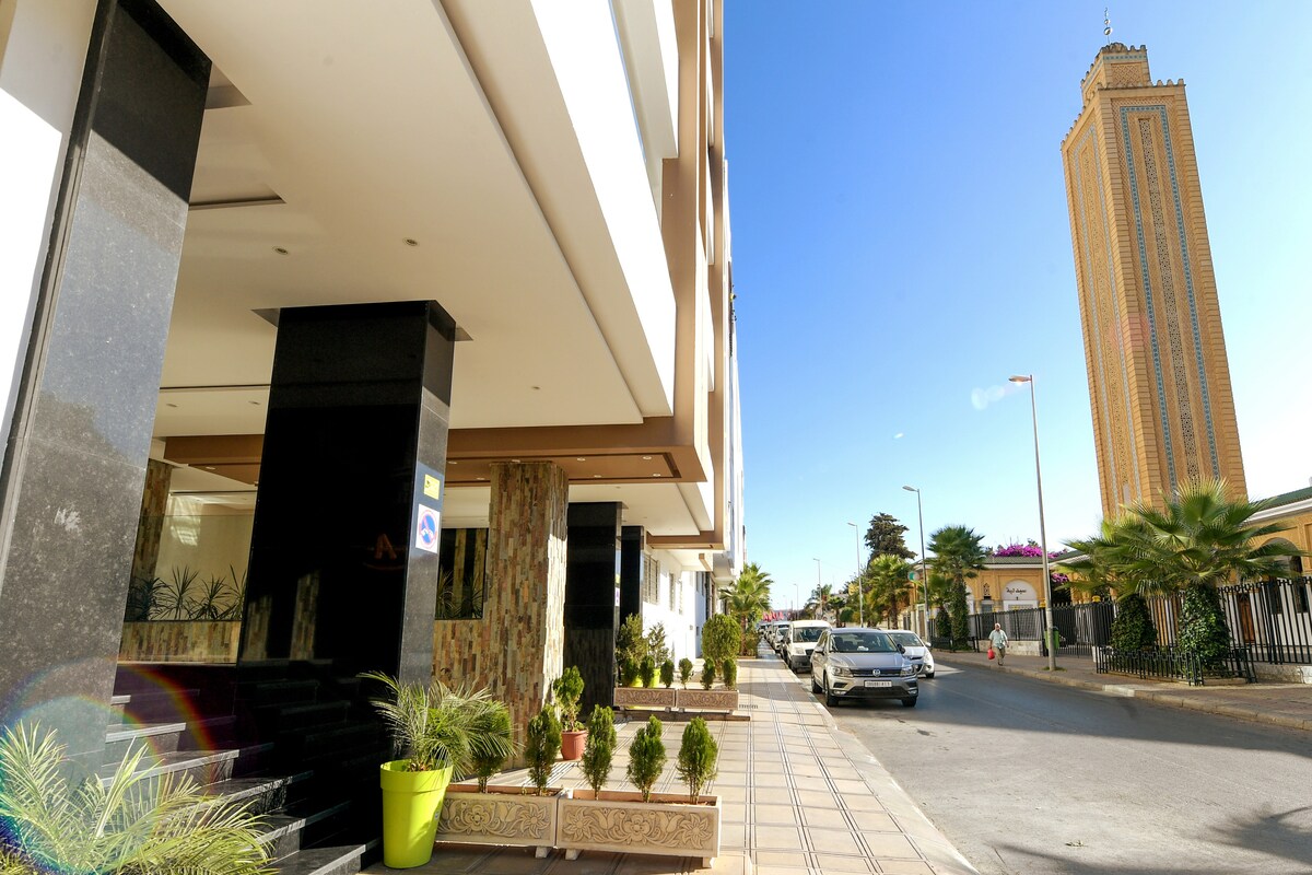 Καλωσορίσατε στο πολυτελές διαμέρισμά μας στην παραλία Mehdia, όπου η άνεση συναντά την παραθαλάσσια κομψότητα. - Τοποθεσία: Λίγα μόλις βήματα από την παραλία, το διαμέρισμά μας προσφέρει εύκολη πρόσβαση στα ζωντανά παραθαλάσσια αξιοθέατα της Mehdia. - Άνεση: Το διαμέρισμά μας μπορεί να φιλοξενήσει έως και τέσσερις επισκέπτες, με ένα υπνοδωμάτιο που διαθέτει είτε ένα κρεβάτι queen size είτε δύο μονά κρεβάτια, καθώς και δύο καναπέδες στο σαλόνι. - Self Check-in: Με το μοναδικό μας σύστημα κωδικών πρόσβασης, που σας επιτρέπει να κάνετε check-in όποτε σας εξυπηρετεί.
