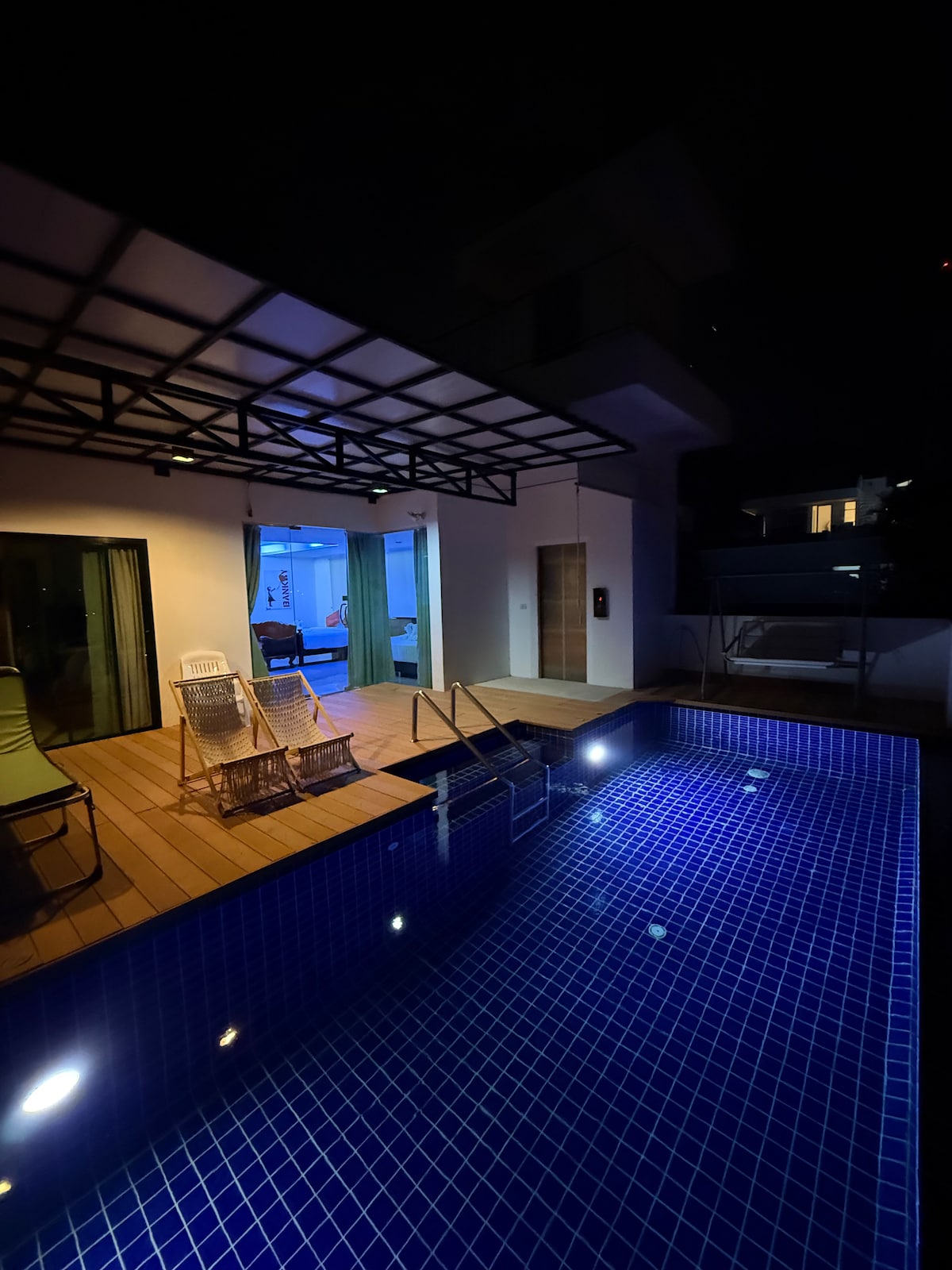 1.别墅 位置优越: 这是在芭东为数不多的独栋别墅。开车去芭东海滩、孟加拉酒吧街,卡伦等中心地带仅需5-10分钟车程,交通便利,晚上没有宵禁限制,适合探索芭东的繁华与活力。同时又远离喧嚣,当您领略了芭东的夜生活后,又可以独享私密安静的个人时光。 2. 全新装修,现代奢华: 别墅于2024年建设并装修,有三间奢华简约的卧室,可容纳6位客人。每间卧室都配备了落地窗、室外阳台和干湿分离的卫生间,确保每位客人的隐私与舒适。 3. 空间设计: 一层:宽敞的室外休闲区和车库。周围环绕热带植物,适合放松身心,感受自然。 二层:温馨的卧室、设备齐全的厨房,以及玻璃屋客厅 。从客厅可以直接步入泳池。客厅四周落地玻璃环绕,可欣赏芭东海湾的壮丽景色和热带雨林风光。 三层:两间独立卧室和卫生间,配备两个舒适大床和纯棉床品,确保客人拥有深度睡眠。 4. 私人泳池: 别墅配备私人泳池。 5· 宁静与繁华的完美结合: 这座独栋别墅是一个理想的度假胜地,结合了现代奢华与自然美景,为客人提供舒适的入住体验。 愿您在这里度过一个轻松愉快的假期!