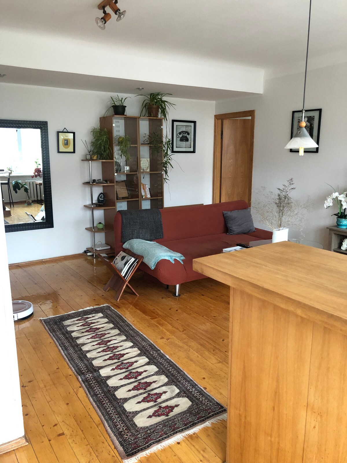 Γεια σας Το διαμέρισμα βρίσκεται στη μέση της κεντρικής οδού Kaunas. Εξαιρετικό μέρος για να ζήσει, σχεδόν όλα τα τουριστικά αξιοθέατα, θέατρα, πανεπιστήμια, παλιά πόλη είναι μόνο σε κοντινή απόσταση. Επίσης είναι πολύ ήσυχα τη νύχτα. Το διαμέρισμα είναι πλήρως εξοπλισμένο, στην κουζίνα υπάρχει ό, τι χρειάζεστε, επίσης πλυντήριο πιάτων, καφετιέρα. Η είσοδος στο διαμέρισμα είναι ασφαλής. Στο σαλόνι υπάρχουν δύο υπνοδωμάτια με διπλά κρεβάτια και καναπέδες που μετατρέπονται σε άνετο διπλό κρεβάτι.