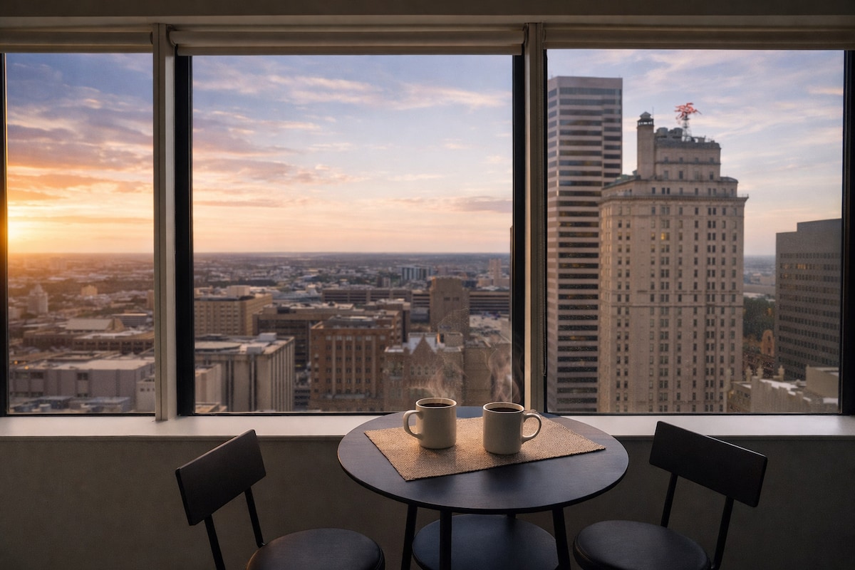 Experience the best of city living in our modern minimalist retreat! Pets Stay Free Enjoy breathtaking views of the city skyline from the comfort of our sleek and stylish high-rise apartment. Located in the heart of downtown, you'll be steps away from top attractions, trendy restaurants, and vibrant bars. Our apt. is the perfect haven for couples, solo travelers, and business professionals seeking a stylish and convenient base for their city adventures.
