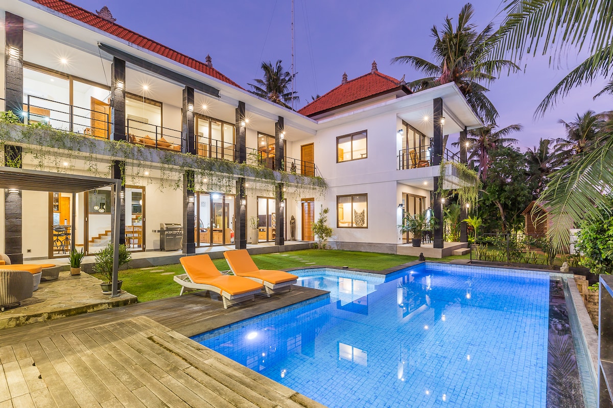 Ευρύχωρη πολυτελής όαση στο κέντρο του εστιατορίου, της παραλίας, της γυμναστικής, των ψωνιών, του τρόπου ζωής και της ψυχαγωγίας του Pererenan Canggu. Τεράστια βίλα 900 τ.μ. με ωραία πισίνα. Εύκολη πρόσβαση με τα πόδια στους κεντρικούς δρόμους. Πρωινό και καθαρισμός 5 ημέρες/εβδομάδα. Τεράστιο ξεχωριστό σαλόνι με κλιματισμό. 2 πολυτελή υπνοδωμάτια με κρεβάτια king size, ιδιωτικά μπάνια + καναπέ. Το φανταστικό μας προσωπικό κάνει μασάζ στο σπίτι και ειδικά γεύματα ή δείπνα που κανονίζονται εύκολα! 3 τηλεοράσεις, συμπεριλαμβανομένης της 75" Sony. Εύκολη πρόσβαση στα κλαμπ Berawa & Echo Beach Finns, Atlas, The Lawn κ.λπ.