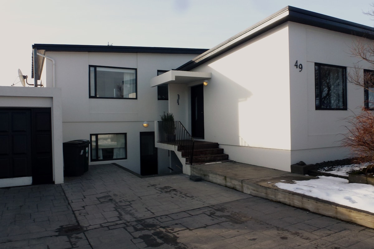 Ένα ευρύχωρο υπόγειο διαμέρισμα στον κεντρικό δρόμο του Κεφλαβίκ. Πολύ κοντά στο αεροδρόμιο Keflavik. Αυτό είναι ένα ιδανικό μέρος για ομάδες ή οικογένειες. Κοντά σε γραφείο τουριστικών πληροφοριών, τοπικά εστιατόρια, σούπερ μάρκετ, τράπεζα και ταχυδρομείο. Θα σας πάρει μόνο 5 λεπτά με το αυτοκίνητο για να φτάσετε εδώ από το κεντρικό αεροδρόμιο Keflavik της Ισλανδίας.
