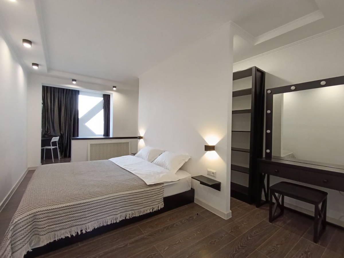 Καλώς ήρθατε στο άνετο διαμέρισμά μας στην καρδιά της πόλης! Αν και βρίσκεται σε κεντρική τοποθεσία, τα παράθυρα έχουν θέα σε μια ήσυχη αυλή, εξασφαλίζοντας μια ήρεμη διαμονή. Το διαμέρισμα βρίσκεται σε ένα ανακαινισμένο κτίριο της σοβιετικής εποχής με μια πινελιά μοντέρνου σχεδιασμού και φιλικούς γείτονες. Σε κοντινή απόσταση, θα βρείτε παντοπωλεία, καφετέριες, εστιατόρια και ένα εμπορικό κέντρο. Απολαύστε γρήγορο Wi-Fi και δωρεάν τσάι, καφέ και ζάχαρη.