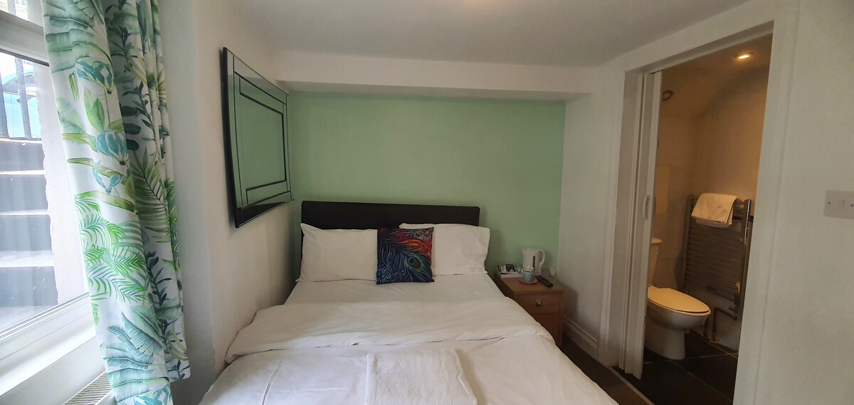 Stay moments from Brighton Pier, the beach, and lively St James’s Street at our budget guesthouse. Clean and comfortable, it’s ideal for guests who value location over luxury. The building has stairs only, no lift, and is not wheelchair accessible. Being in a central spot, some street noise is to be expected. Each room has a private ensuite, fresh linen, towels, and basic Wi-Fi for light browsing. The Lanes, Royal Pavilion, cafés, bars all within walking distance.