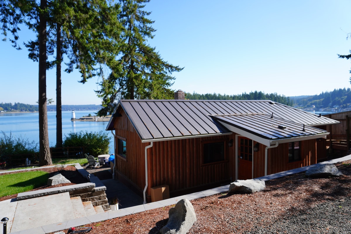 Ιδιωτική καμπίνα μπροστά στην παραλία με θέα στο βουνό Rainier