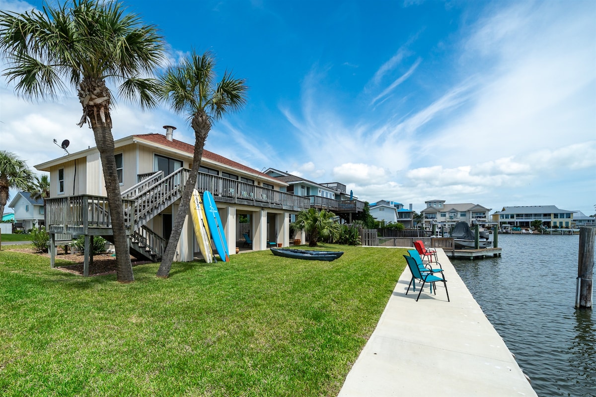 Enjoy on your own private dock, take out the included kayaks, peruse the local beach and eats! After you enjoy the beachy breezes, come back to the lounge-worthy back patio and enjoy the sunset as the scent of your grilling mastery wafts through the bay air. You have your own private boat dock should you want to bring or rent a boat and explore the area bayside. The dedicated dock right outside your door can accommodate a vessel up to 26' long and 14’ wide.