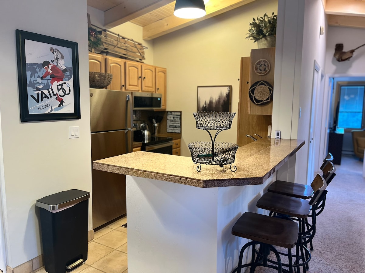 Καλώς ήρθατε στο Buffalo Lodge Condo, ένα άνετο καταφύγιο στο χωριό River-Run του Keystone, λίγα βήματα από τα τελεφερίκ. Απολαύστε σύγχρονες ανέσεις, όπως θερμαινόμενη θέση στάθμευσης στο γκαράζ (1) και εύκολη πρόσβαση σε πίστες του σκι και ποδηλασίας. Το γοητευτικό μας διαμέρισμα μπορεί να φιλοξενήσει 4 άτομα, με ένα υπέρδιπλο κρεβάτι και έναν υπέρδιπλο καναπέ-κρεβάτι, προσφέροντας εκπληκτική θέα στο βουνό για να ξυπνήσετε. Μόλις 5 λεπτά με το αυτοκίνητο από τη λίμνη Ντίλον και 10 έως 45 λεπτά από το Μπρέκενριτζ, το Κόπερ Μάουντεν, το Α-Μπέισιν, το Λόβλαντ, το Βέιλ και το Μπίβερ Κρικ.