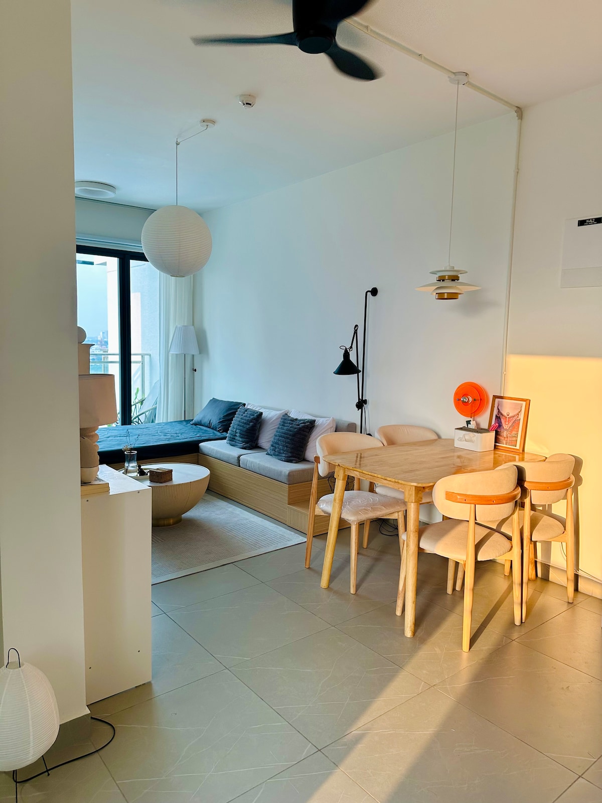 Ολοκαίνουργιο διαμέρισμα δύο υπνοδωματίων, πλήρως επιπλωμένο και εξοπλισμένο με συσκευές εξοικονόμησης ενέργειας, εσωτερικό διακοσμημένο με μινιμαλιστική ιαπωνική αίσθηση ζεν. Το όμορφο μπαλκόνι βλέπει απευθείας στον ποταμό Μεκόνγκ, δίνοντάς σας την αίσθηση ότι βρίσκεστε κάπου μακριά από την πόλη, ενώ απέχει μόνο 15 λεπτά με το αυτοκίνητο από το κέντρο της πόλης. Το συγκρότημα διαθέτει αρκετά στρέμματα διαμορφωμένων κήπων και έναν πεζόδρομο δίπλα στο ποτάμι. Οι εγκαταστάσεις περιλαμβάνουν 2 πισίνες, γυμναστήριο, σάουνα, καφετέρια, μίνι μάρκετ και εστιατόριο.