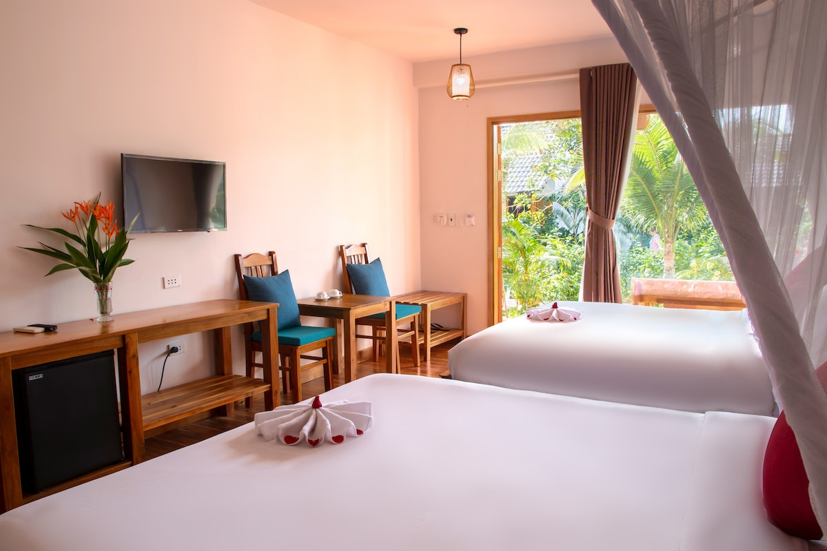 Với tầm nhìn trực diện ra hồ bơi và vườn, loại phòng này sẽ mang đến cho bạn cảm giác đắm chìm trong vẻ đẹp vườn cây xanh mát. Diện tích phòng lớn giúp bạn tận hưởng được không gian sống rộng rãi và khoảng vườn riêng tư để thưởng thức khung cảnh tuyệt đẹp.