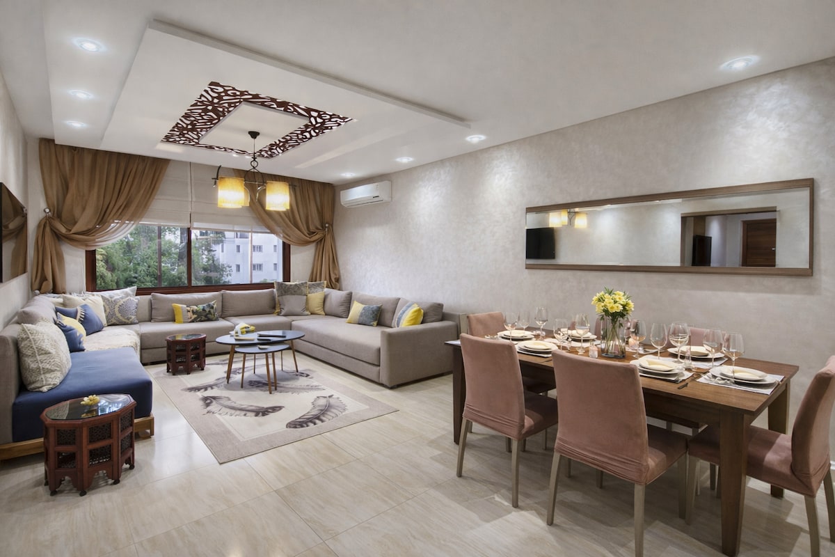 Ζήστε την πολυτέλεια στην καρδιά του Ραμπάτ, της πρωτεύουσας του Μαρόκου! Αυτός ο εκλεπτυσμένος χώρος διαθέτει ζεστές γωνιές, ένα άνετο κρεβάτι, μια πλήρως εξοπλισμένη κουζίνα και δωρεάν Wi-Fi.Διαθέτει όλα όσα χρειάζεστε για μια χαλαρωτική διαμονή. Αυτό το μοντέρνο διαμέρισμα βρίσκεται στην κομψή άνω πλευρά του Agdal, κοντά στο ξενοδοχείο Sofitel, τη Σχολή Descartes και το δάσος Ibn Sina.Σε βολική τοποθεσία, το διαμέρισμα απέχει λίγα βήματα από τον κεντρικό δρόμο, γεμάτο καταστήματα, καφετέριες και εστιατόρια.Απέχει μόλις 10 λεπτά με το αυτοκίνητο από τη Μεδίνα.
