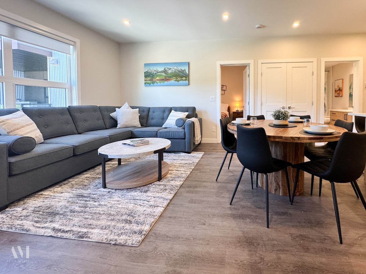 Ανακαλύψτε την τέλεια απόδραση σε αυτό το άνετο διαμέρισμα 2 υπνοδωματίων με εκπληκτική θέα στο βουνό, μόλις 5 λεπτά νότια του Γκόλντεν. Σε ιδανική τοποθεσία κοντά στο Kicking Horse Ski Resort και σε πέντε εθνικά πάρκα, είναι ένα καταφύγιο για τους λάτρεις της υπαίθρου. Απολαύστε μια καλά εξοπλισμένη κουζίνα, έναν άνετο χώρο διαβίωσης και εύκολη πρόσβαση σε σκι, έλκηθρο, πεζοπορία και το γοητευτικό κέντρο του Golden. Είτε αναζητάτε περιπέτεια είτε χαλάρωση, αυτή είναι η ιδανική βάση σας. Κάντε κράτηση για τη διαμονή σας και ζήστε την ομορφιά των βουνών!