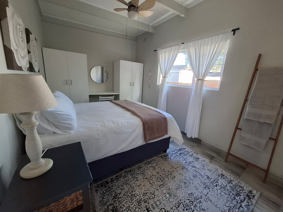 Ιδιωτικό διαμέρισμα με ένα υπνοδωμάτιο, κλιματιζόμενο και με κήπο. Ένα τέλειο καταφύγιο με όλες τις απαραίτητες συσκευές, όπως Weber Braai, καφετιέρα συμβατή με Nespresso, φριτέζα αέρα και πλυντήριο ρούχων. Άνετα κλινοσκεπάσματα. Βρίσκεται σε ένα ήσυχο προάστιο μόλις 2,5 χιλιόμετρα από τα εστιατόρια και τα σούπερ μάρκετ Hemingways Mall και Abbotsford Village. Γκαράζ για αυτοκίνητο μεσαίου μεγέθους στις εγκαταστάσεις. Οι επισκέπτες μας επιστρέφουν ξανά και ξανά.