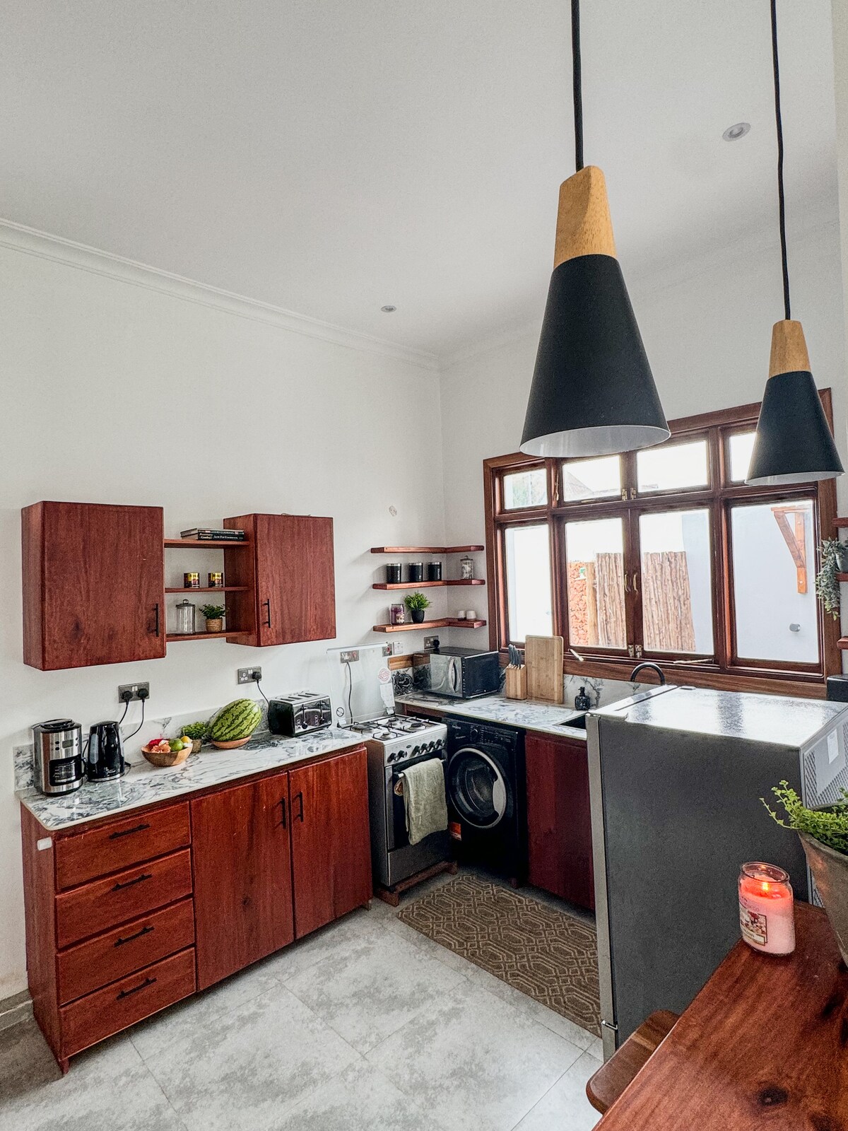 Ένα προσεκτικά σχεδιασμένο, ισόγειο, διαμέρισμα με ένα κρεβάτι με γνώμονα το στυλ και την άνεση. Διακοσμημένο με έπιπλα χειροποίητα από ντόπιους και λουσμένο στο φυσικό φως, οι τιρκουάζ πινελιές του προσφέρουν μια γαλήνια ατμόσφαιρα που συμπληρώνει την εκπληκτική του τοποθεσία με θέα στον μεγαλοπρεπή Ινδικό Ωκεανό. Το κατάλυμα βρίσκεται σε φανταστική τοποθεσία, 5 λεπτά από το αεροδρόμιο, 10 λεπτά από την Πέτρινη Πόλη. Είτε βρίσκεστε σε οικογενειακές διακοπές, για μήνα του μέλιτος ή με φίλους, το The Cliff @ Mazzini είναι ένα πραγματικό σπίτι μακριά από το σπίτι σας.