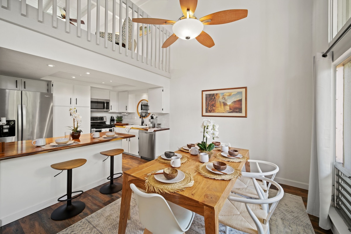 Newly renovated modern Princeville 1 bedroom w/ king bed, ac and mountain range views! ✅ Close to the best beaches, trails, & eats on Kauai's North Shore ✅ 5-10 Min to Hanalei ✅ Air Conditioned ✅ Pool, Hot Tub & BBQ Access ✅ Fully-Equipped Kitchen ✅ Complimentary Beach Gear ✅ No Resort Fees We have a large lanai with a 4 person dining table, and also outdoor furniture for enjoying a Mai Tai after a long day at the beach.