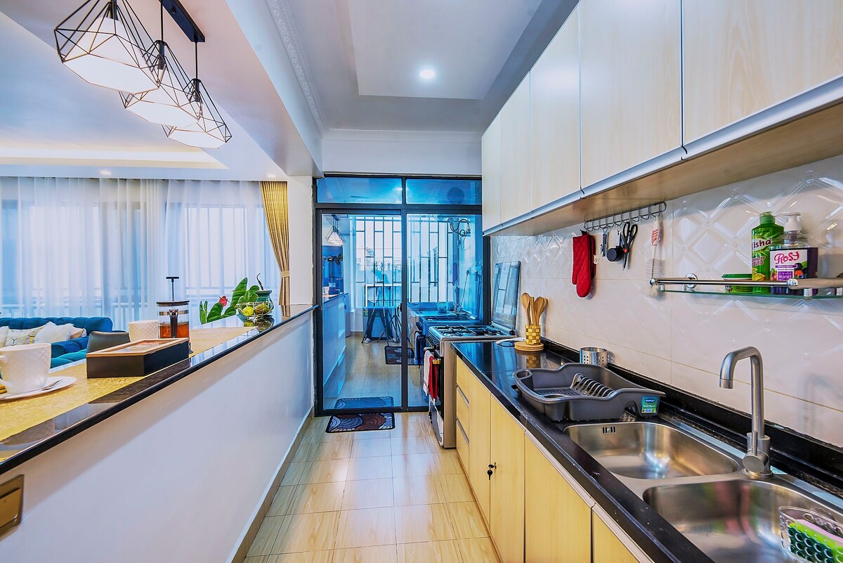 Καλώς ήρθατε στο κομψό διαμέρισμά μας σε ψηλό όροφο στο Κιλιμάνι του Ναϊρόμπι. Απολαύστε υπέροχη θέα στο Κιλιμάνι και προς το Γουέστλαντς από έναν άνετο, προσεκτικά σχεδιασμένο χώρο. Το διαμέρισμα βρίσκεται λίγα λεπτά από το Yaya Centre, το Prestige Plaza και το Carrefour στη Λεωφόρο Ρόζης, με πολλές καφετέριες και εστιατόρια σε κοντινή απόσταση, συμπεριλαμβανομένης της China City, στην οποία μπορείτε να πάτε με τα πόδια. Με ασφάλεια 24 ώρες το 24-ωρο, 7 ημέρες την εβδομάδα, εύκολη πρόσβαση με Uber και γρήγορες συνδέσεις με την κεντρική επιχειρηματική περιοχή και το Διεθνές Αεροδρόμιο Jinnah μέσω του αυτοκινητόδρομου, αποτελεί ιδανική βάση για επαγγελματικές διαμονές ή διαμονές αναψυχής.