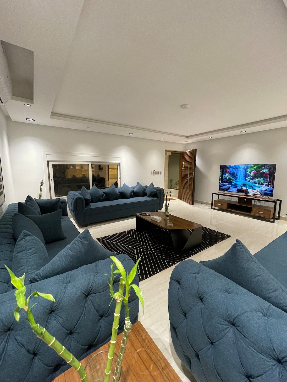 Πολυτελές διαμέρισμα στη γειτονιά Hateen δίπλα στο Boulevard Riyadh Season στο κτίριο Homtel Residence Με έξυπνη αυτόνομη είσοδο που αποτελείται από: - Ιδιωτική πισίνα με θέα στο KAFD και το Boulevard - Μπιλιάρδο - Εξωτερικό καθιστικό - Καθιστικό με Smart TV, τραπεζαρία, κουζίνα και μπάνιο για τους επισκέπτες - Ενσωματωμένη κουζίνα (Φούρνος / Ψυγείο / Φούρνος μικροκυμάτων / Καφετιέρα / Βραστήρας / Αυτόματο πλυντήριο ρούχων / Σκεύη κουζίνας) - Master bedroom με ιδιωτικό μπάνιο - Δύο υπνοδωμάτια με δύο μονά κρεβάτια και κοινόχρηστο μπάνιο -Σημείωση: Η λεωφόρος της πόλης του Ριάντ απέχει μόλις 5 λεπτά με τα πόδια.