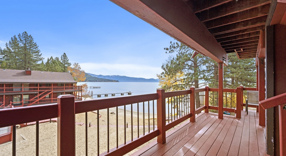 Tahoe Vista North Lake Tahoe Διαμέρισμα μπροστά στη λίμνη! Απολαύστε θέα 180 μοιρών στο Τάχο λίγα μόνο βήματα από την πόρτα σας. 2 υπνοδωμάτια, 2,5 μπάνια με δύο μπαλκόνια με θέα στη λίμνη και ιδιωτική πρόσβαση στην παραλία μόνο για τις 38 μονάδες στο HOA (περιλαμβάπτονται καρέκλες, ομπρέλα!). Περπατήστε 3 λεπτά μέχρι το Safeway/Lanza 's, 15 λεπτά μέχρι την παραλία King' s Beach. 30 λεπτά με το αυτοκίνητο μέχρι 5 χιονοδρομικά κέντρα. Η τέλεια απόδραση δίπλα στη λίμνη σας περιμένει!