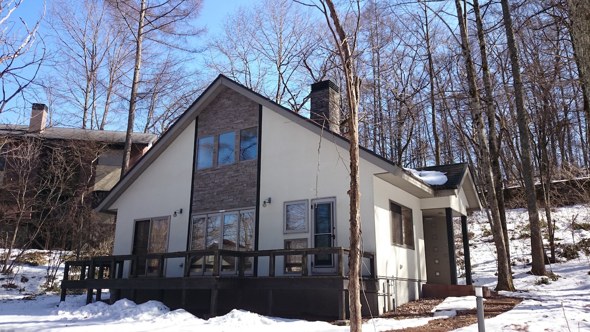 * Από την 1η Ιουνίου 2026, θα εισαχθεί σύστημα φόρου διαμονής στην πόλη Karuizawa.Για τον λόγο αυτό, η χρέωση καταλύματος έχει ενημερωθεί. Βίλα σε ήσυχη περιοχή με βίλες στην Καρουϊζάβα, Honors Hill Ένα σαλόνι με άπλετο φως από τον ήλιο, με ένα μεγάλο παράθυρο και μια ξύλινη βεράντα που συνδέει ομαλά τον εσωτερικό χώρο με τη φύση Μπορείτε να νιώσετε κοντά στη φύση με τις ανθισμένες κερασιές την άνοιξη, τις ορτανσίες το καλοκαίρι, τα φθινοπωρινά φύλλα το φθινόπωρο και, τον χειμώνα, την Καρουϊζάβα κάθε εποχή. Τον χειμώνα, ανάψτε φωτιά στη ξυλόσομπα (ξεχωριστό για ξύλα) και χαλαρώστε παρακολουθώντας τη φλόγα να τρεμοπαίζει. · 2 ξεχωριστά υπνοδωμάτια: Φιλοξενεί έως 4 άτομα (2 μονά κρεβάτια, 2 ημιδιπλά κρεβάτια) Ηλεκτρικό μπάρμπεκιου στην ευρύχωρη ξύλινη βεράντα (Οι κρατήσεις για ενοικιαζόμενο εξοπλισμό είναι διαθέσιμες έως τις 18:00 της ημέρας πριν από τη διαμονή σας, ο αριθμός είναι περιορισμένος και δεν υπάρχει δυνατότητα μεταφοράς του εξοπλισμού) * Ίδια τιμή για έως 2 άτομα (Θα υπάρξει επιπλέον χρέωση αν υπάρχουν περισσότερα από 2 άτομα) * Owners Hill, Karuizawa Περίπου 20-30 λεπτά με το αυτοκίνητο από τον σταθμό Karuizawa Μια βίλα σε ψηλό έδαφος που βρίσκεται στους πρόποδες του όρους Morizumi, σε υψόμετρο περίπου 1.000 έως 1.100 μέτρων Εξαιρετική πρόσβαση σε δημοφιλή σημεία όπως την περιοχή Hoshino και τη δημοφιλή περιοχή Miyoda-cho