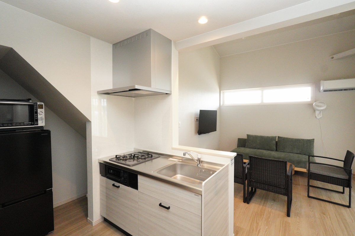 Play Garden Ohinata features a sunny private garden connected to the indoors through large windows.Large windows blur the boundary between indoors and the garden. This entire-home villa offers a calm stay with family, friends, and your dog. ✴︎ Wood-burning stove is included. ✴︎Seasonings:Salt, pepper, oil, soy sauce ✴︎ Please inform us of the number of pets. ✴︎ Sauna is optional; inquire after booking. ✴︎ Fire pit / BBQ sets are optional; inquire after booking